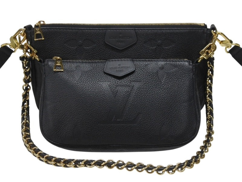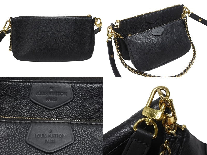 極美品 LOUIS VUITTON ルイヴィトン モノグラム アンプラント ミュルティ ポシェット アクセソワール ブラック M80399 現行 ゴールド金具 中古 4b007186