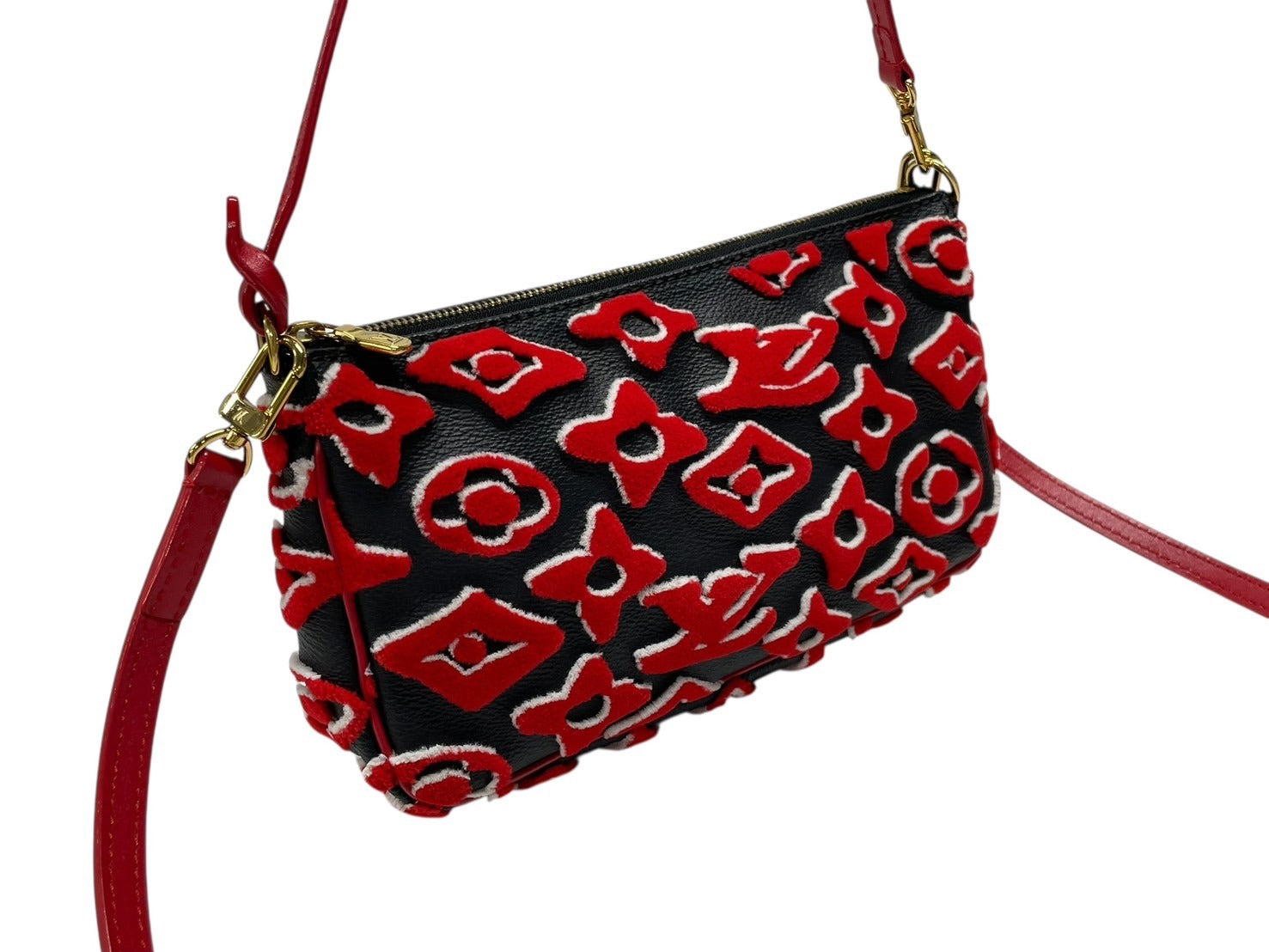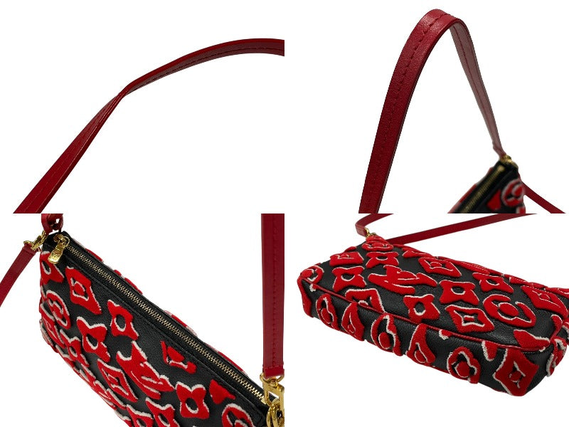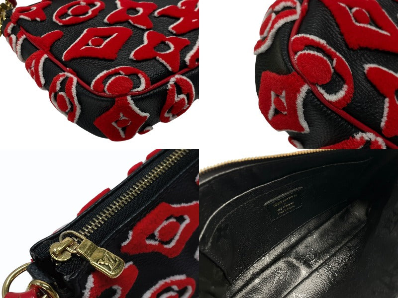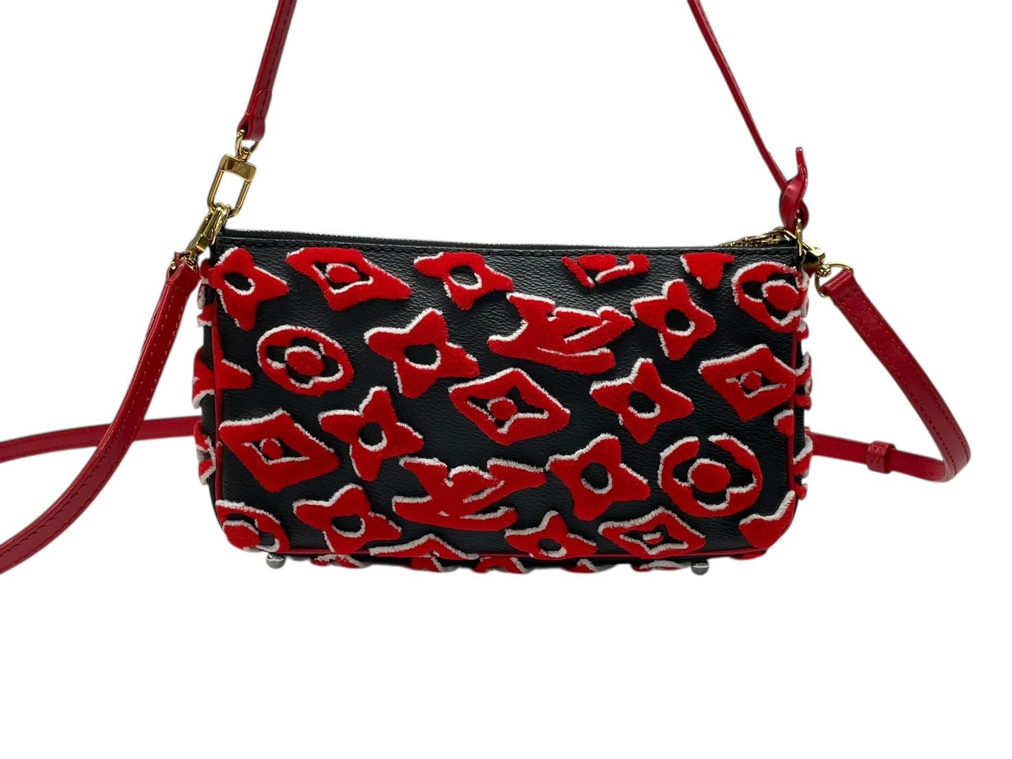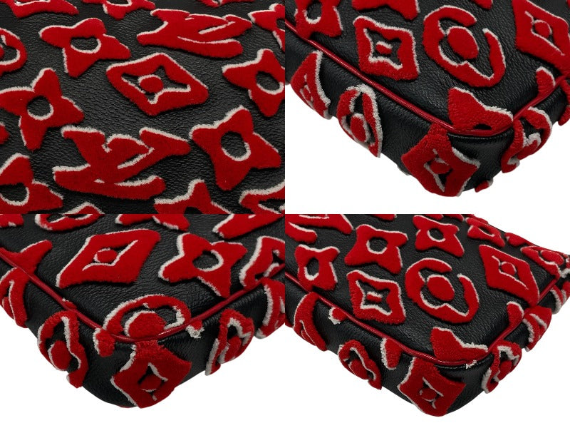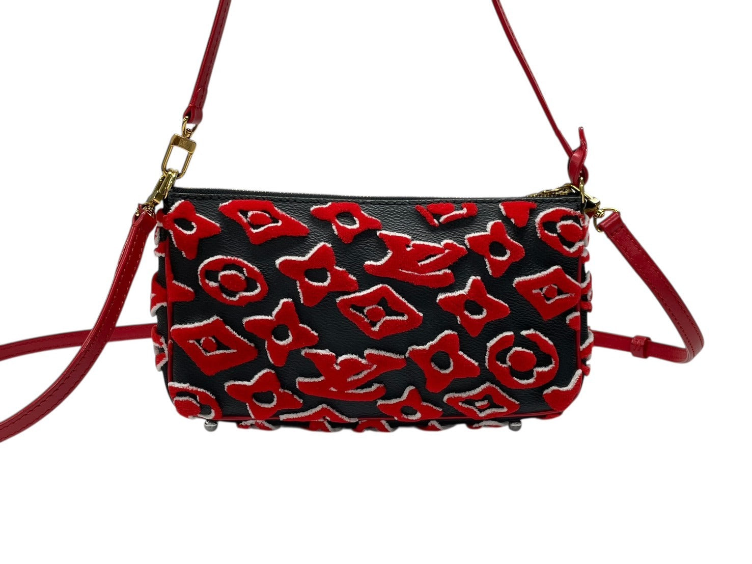 新品同様 ルイヴィトン ポシェットアクセソワール タフテッド モノグラム ウルス フィッシャー M45548 ブラック レッド 中古 4b007624