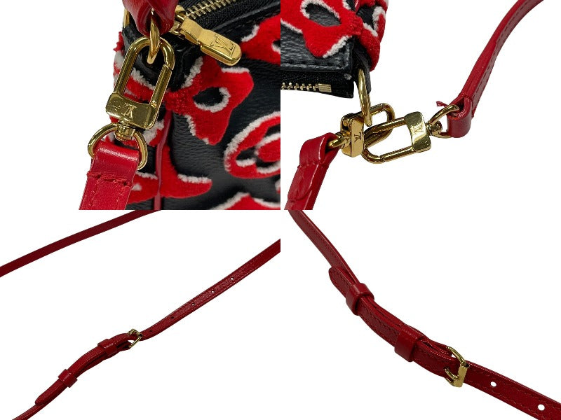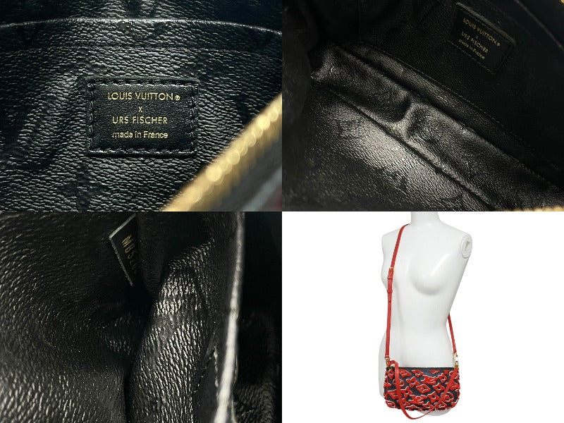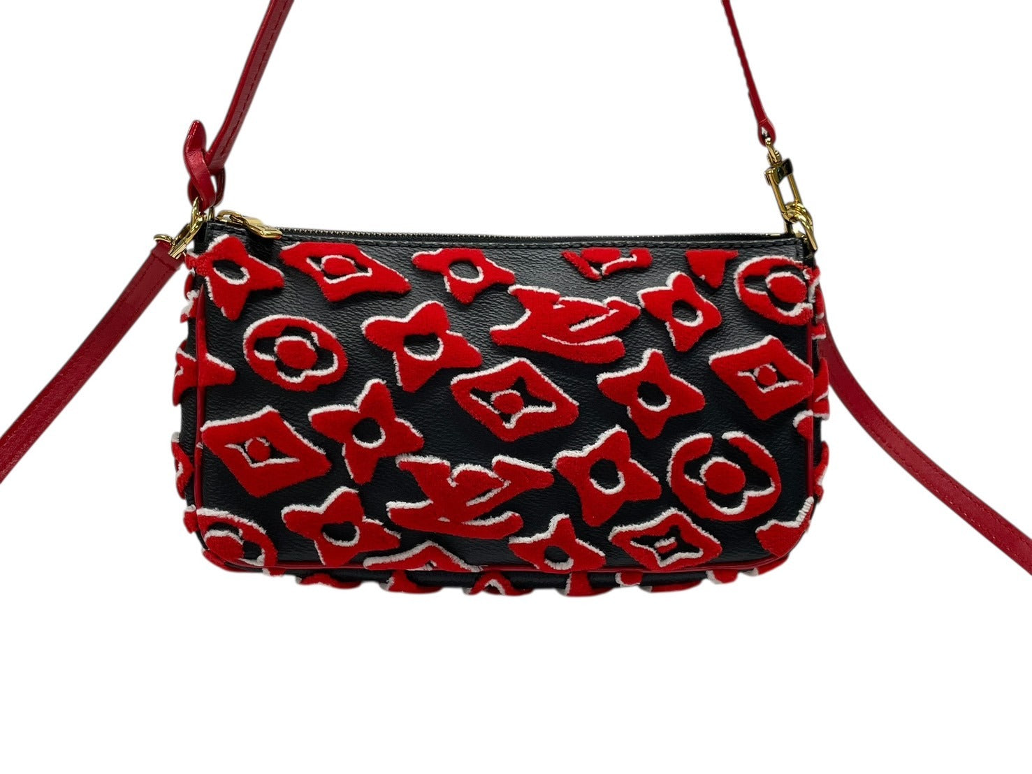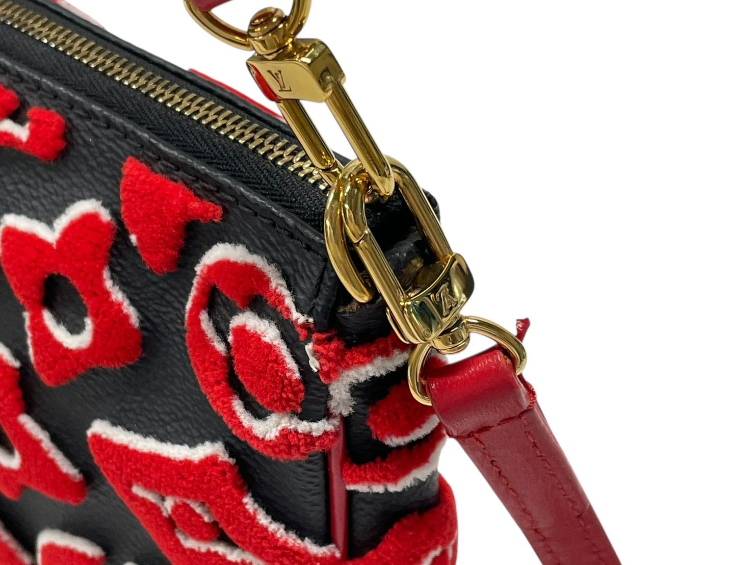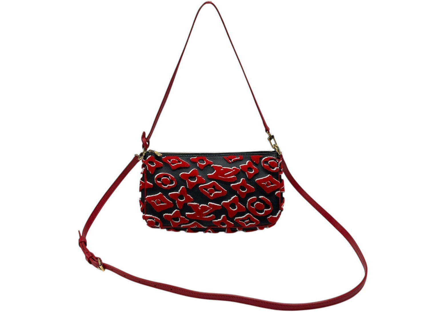 新品同様 ルイヴィトン ポシェットアクセソワール タフテッド モノグラム ウルス フィッシャー M45548 ブラック レッド 中古 4b007624