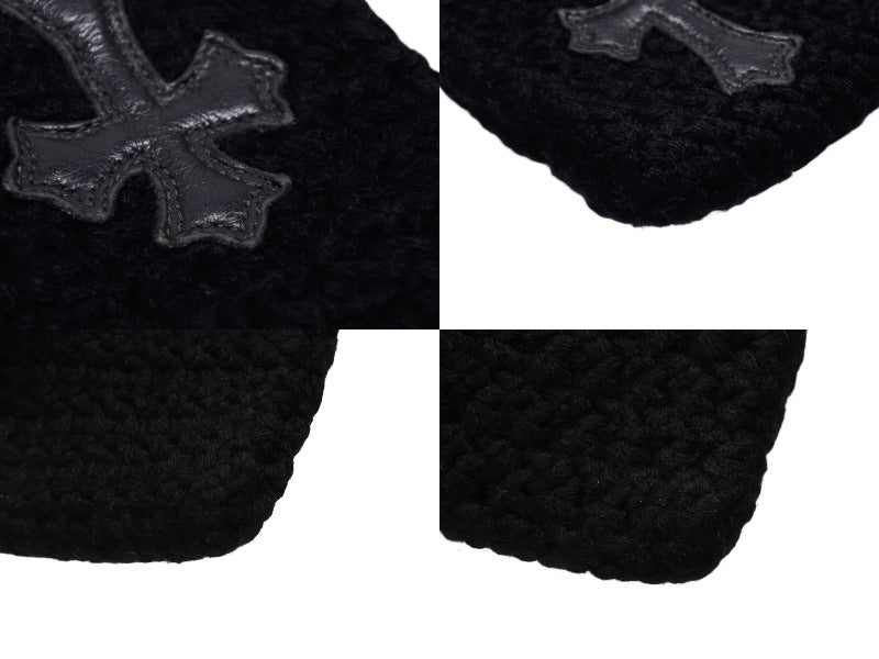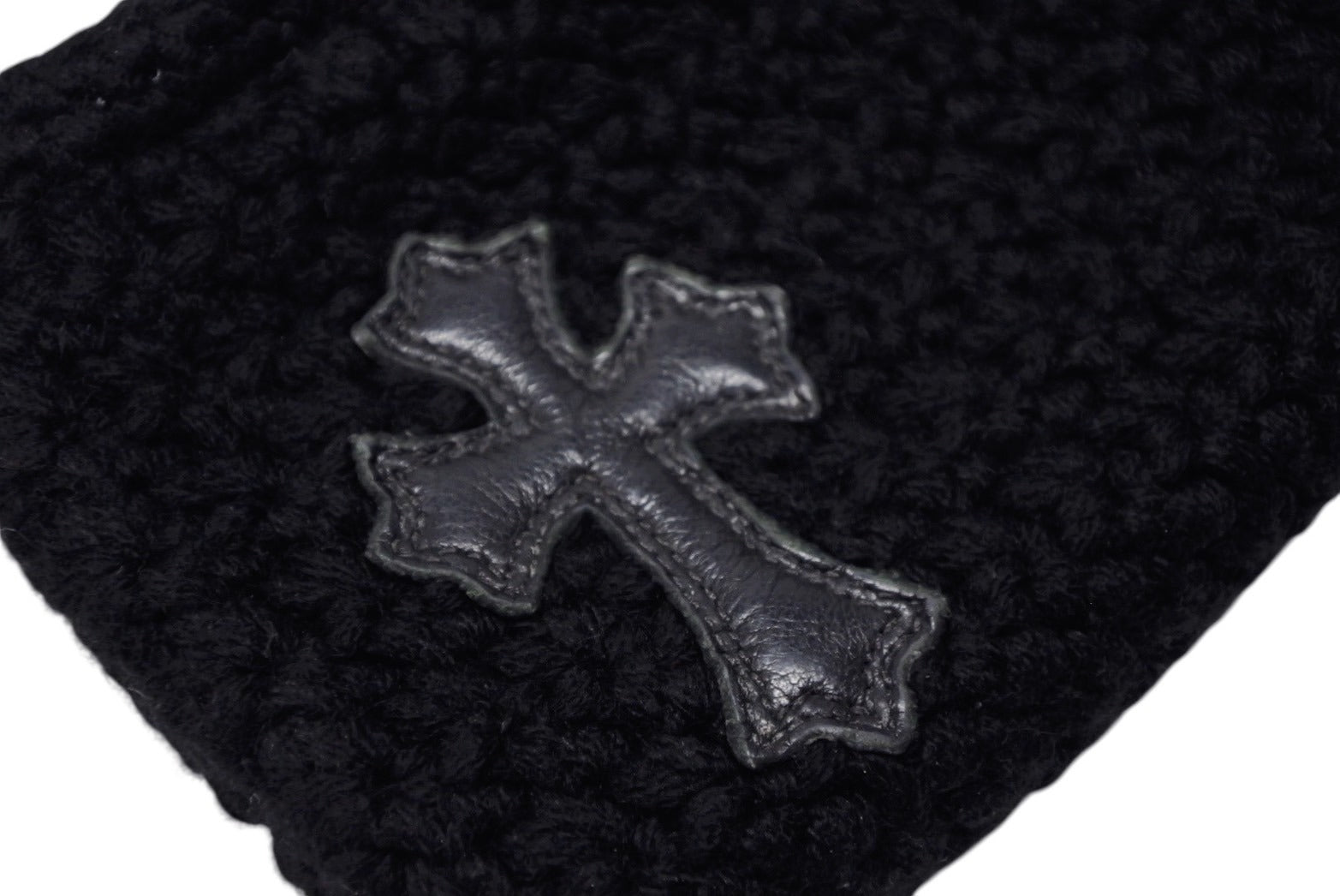 レザークロスパッチが装飾されたカシミヤ素材の高級感漂うアイテムです。
