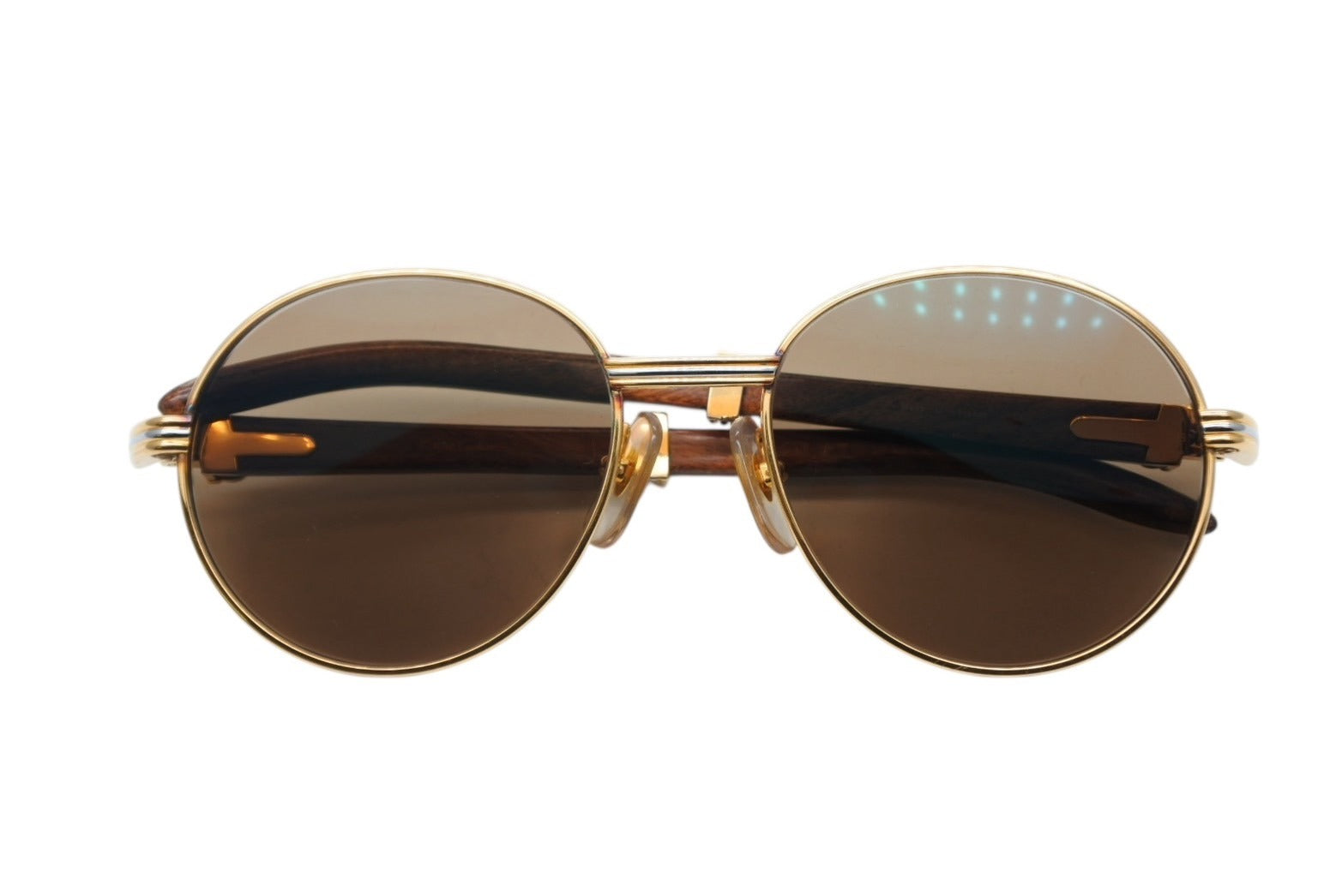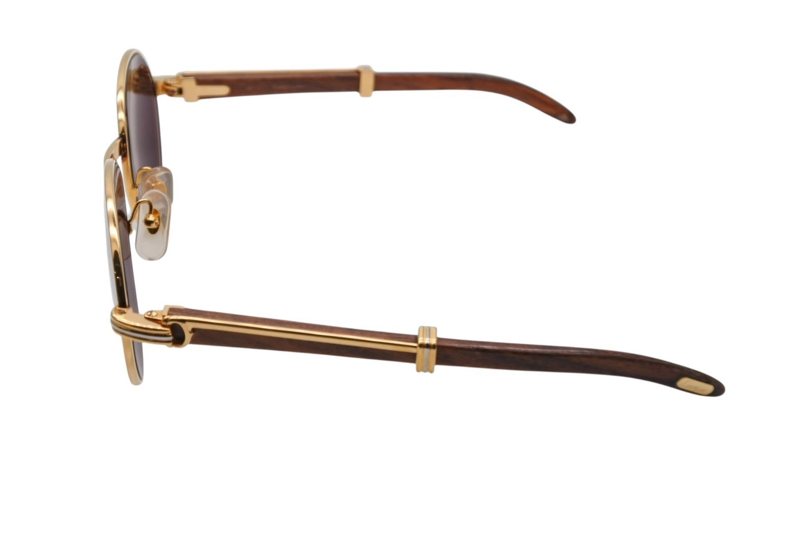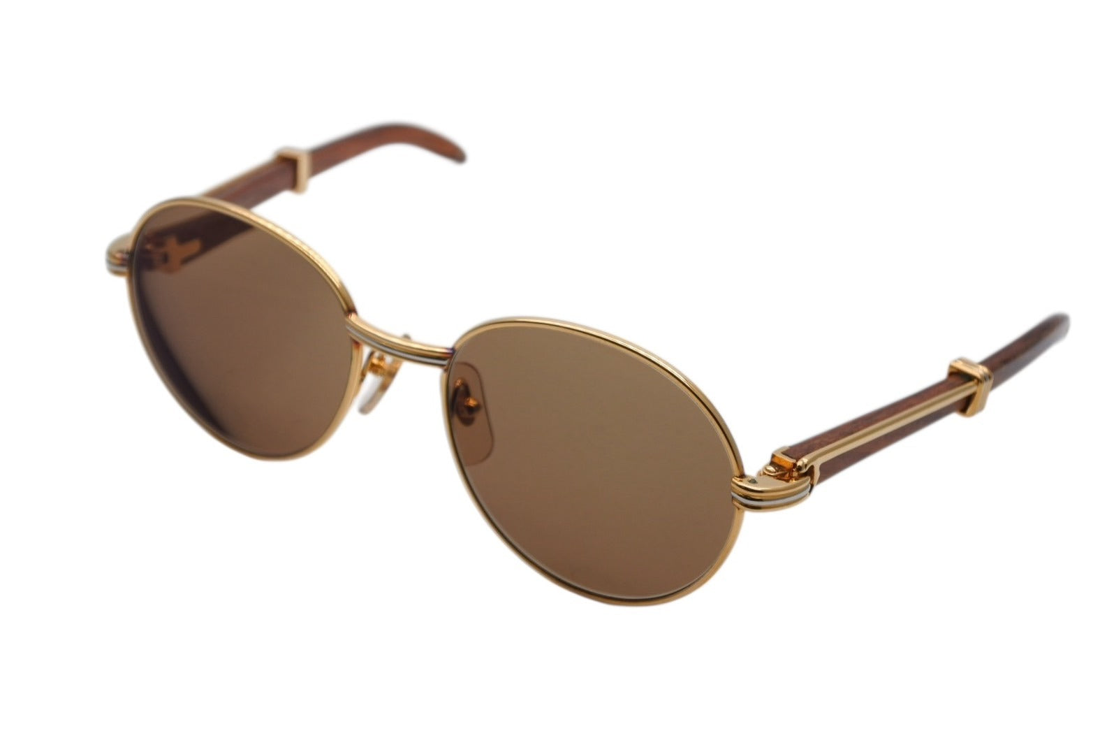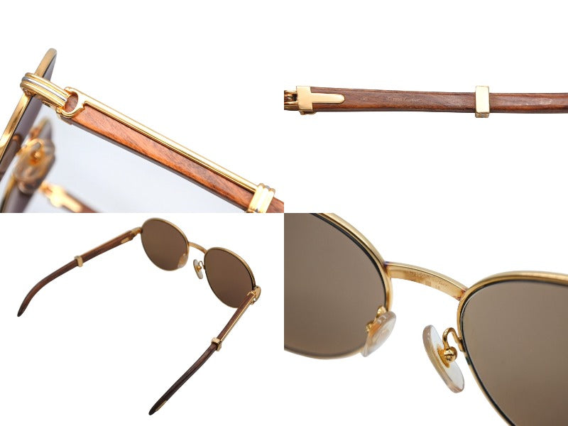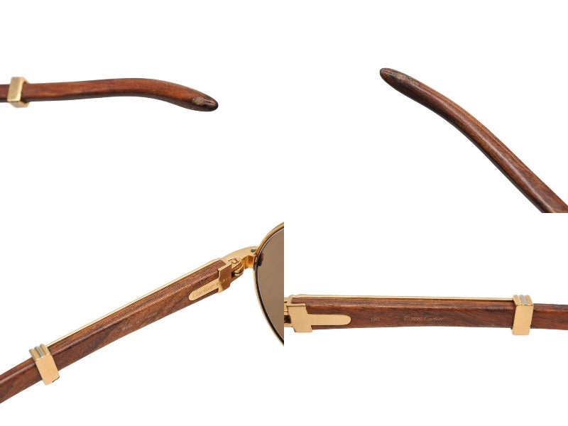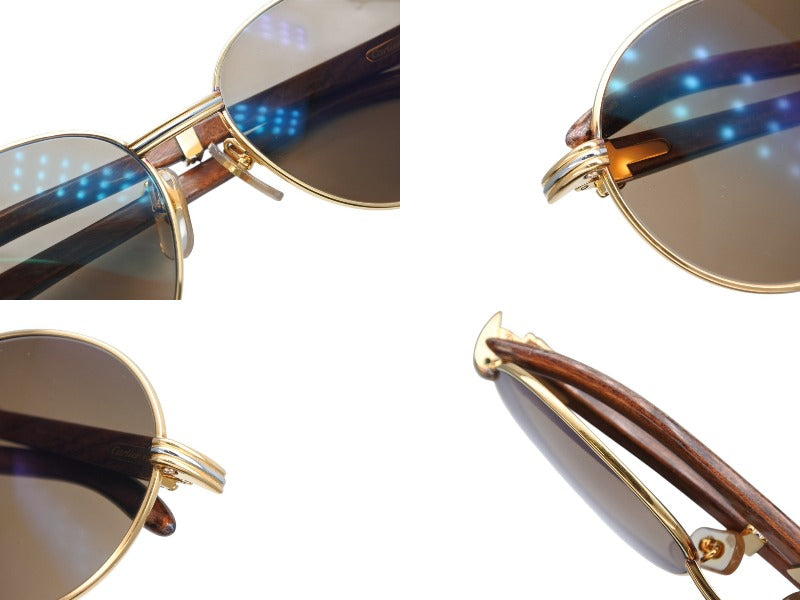 CARTIER カルティエ オーバル サングラス アイウェア サイズ52□18 130 トリニティ ウッドテンプル ゴールド GP 美品 中古 4b009836