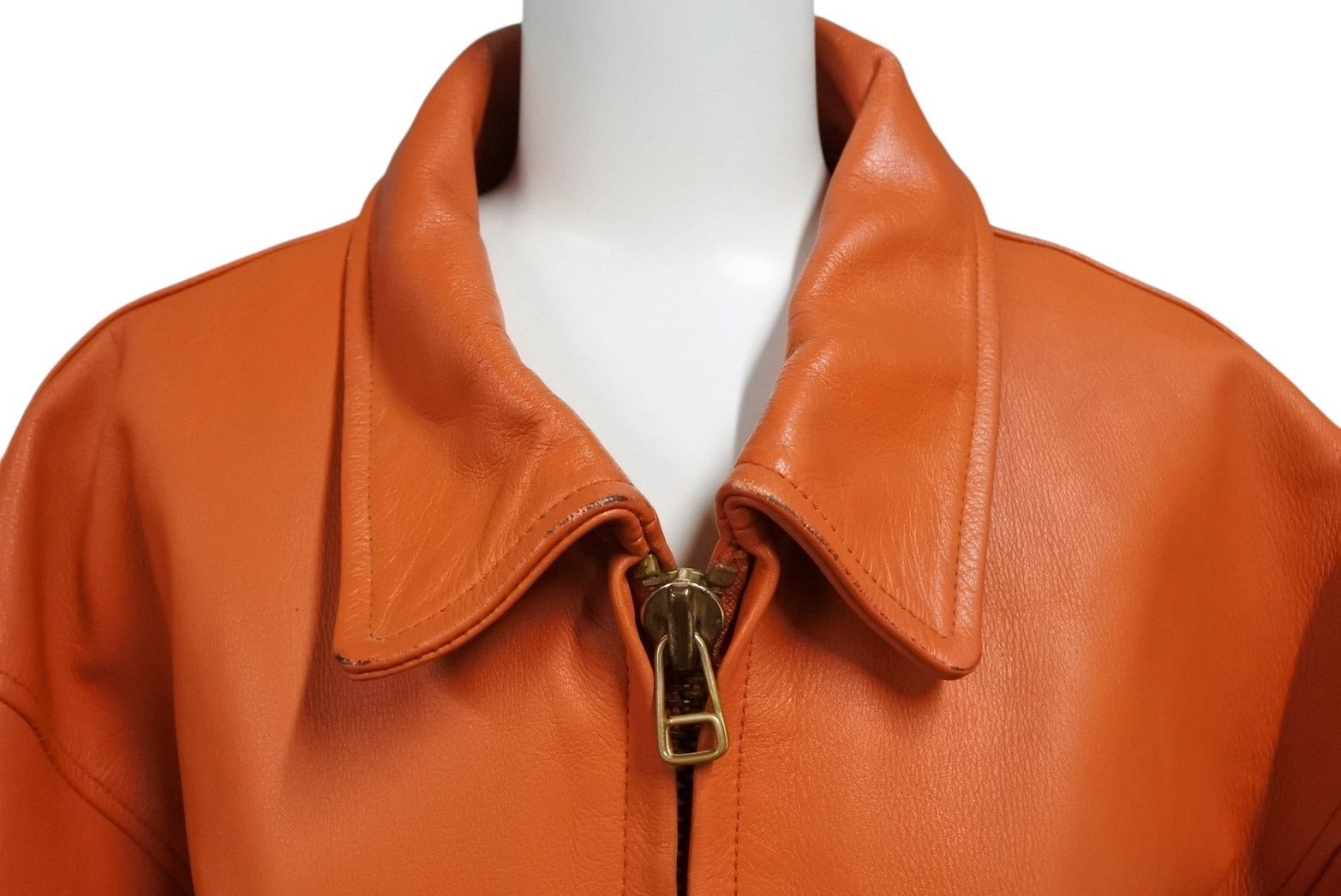 首元、フロント、袖、背面にスレ、汚れ、シワあり。背面プリントに少々スレあり。内側に汚れあり。金具パーツにスレ、小傷、くすみあり。その他使用感の少ない状態です。