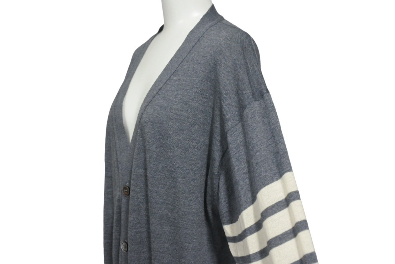 THOM BROWNE トムブラウン MKC002A00014038 ミディアムグレー メリノウール ニット 4-Bar クラシック Vネックカーディガン グレー サイズ5 美品 中古 4c067914