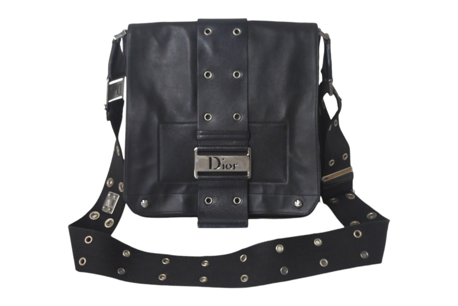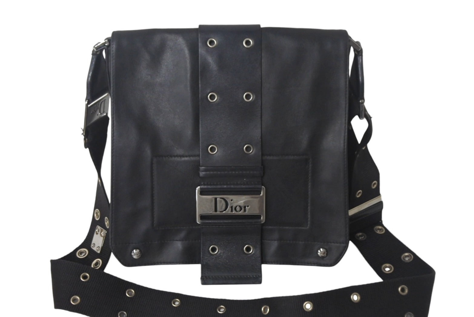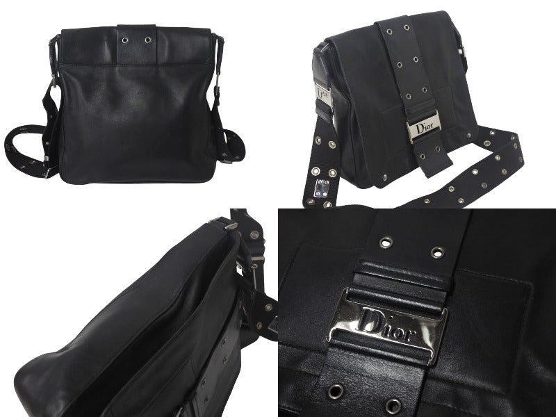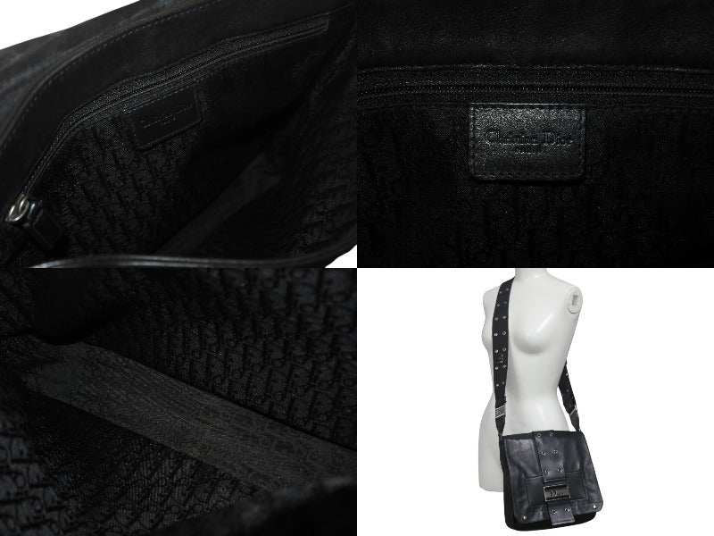 Christian Dior クリスチャンディオール ストリートシック ショルダーバッグ レザー ブラック シルバー金具 美品 4c068052