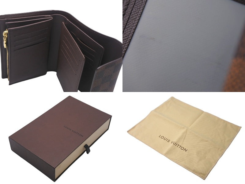 極美品 LouisVuitton ルイヴィトン ダミエ ポルトフォイユ アレクサンドラ 三つ折り財布 N63067 ブラウン PVC レザー 中古 4c068161