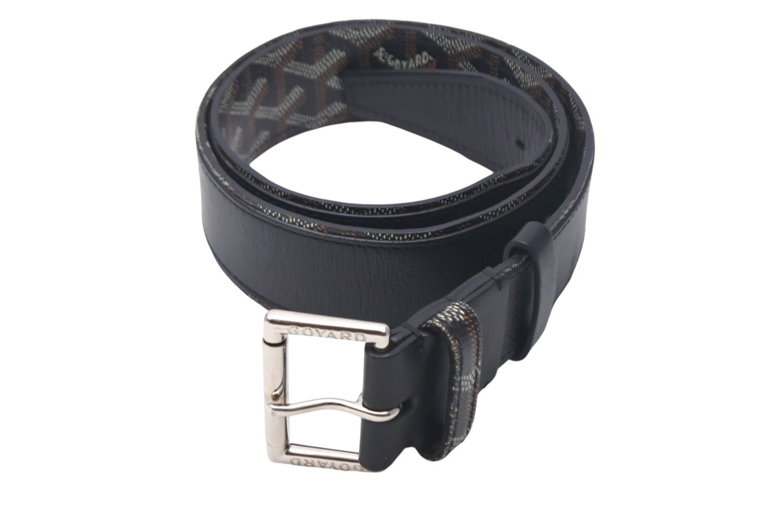 GOYARD ゴヤール フロリダ ベルト サイズ85cm ブラック ヘリンボーン柄 PVCコーティングキャンバス 美品 中古 4c068230