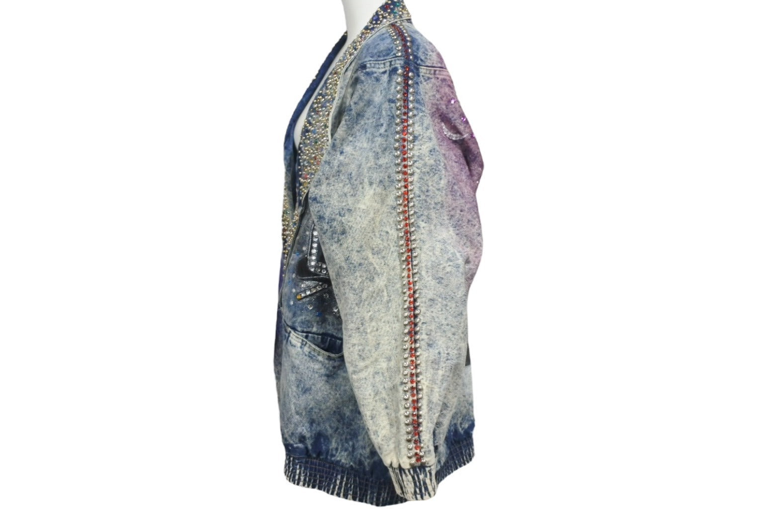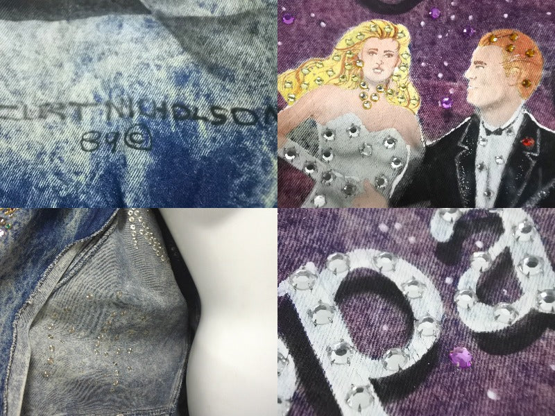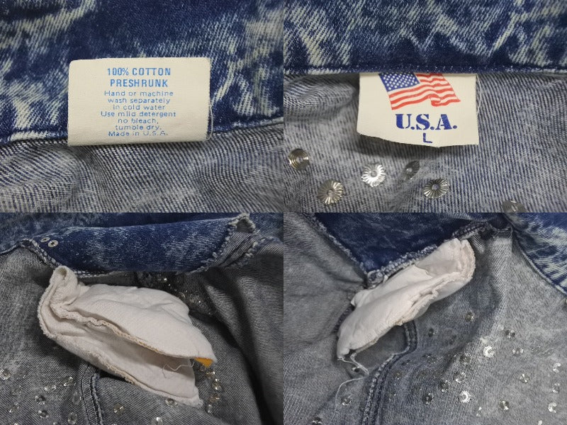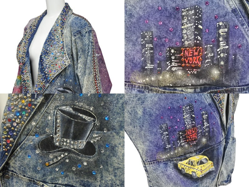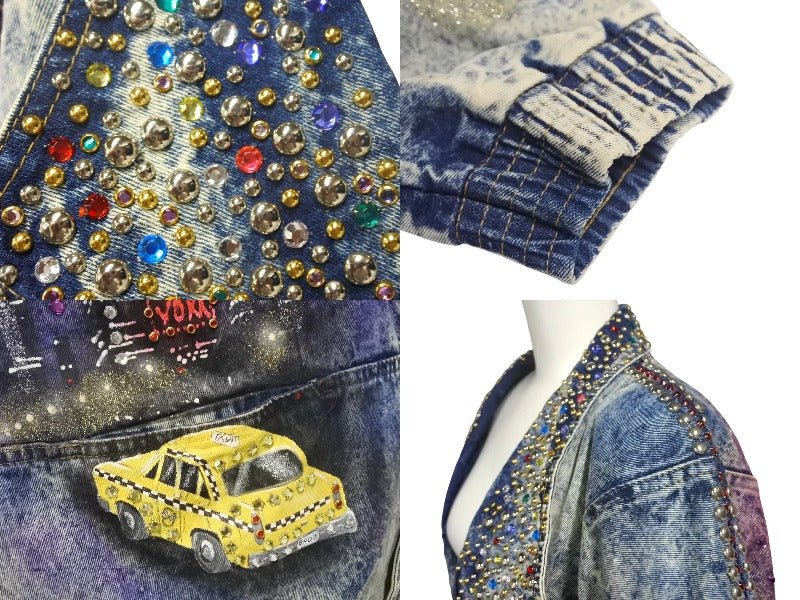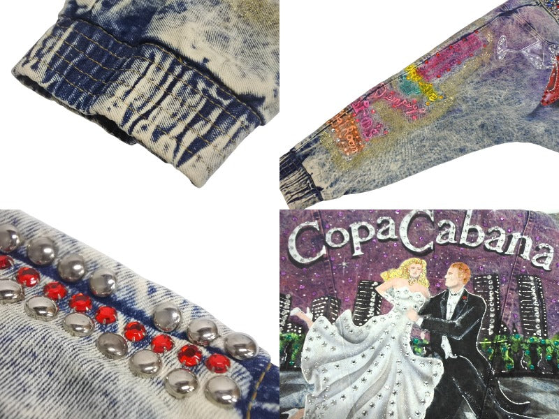 ノーブランド ライダースデニムジャケット CopaCabana コパカバーナ ラインストーン ブルー マルチカラー サイズL 4c068430