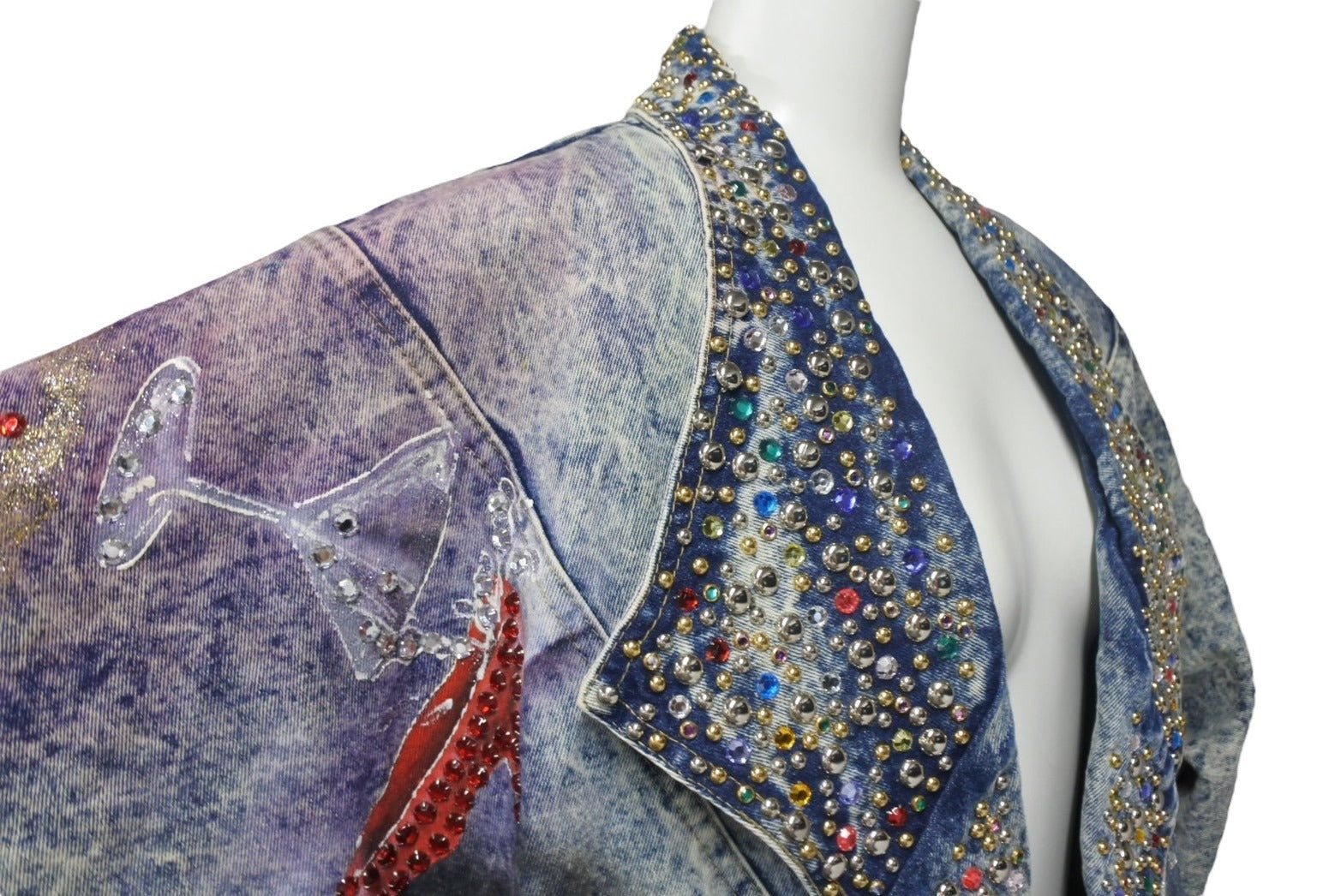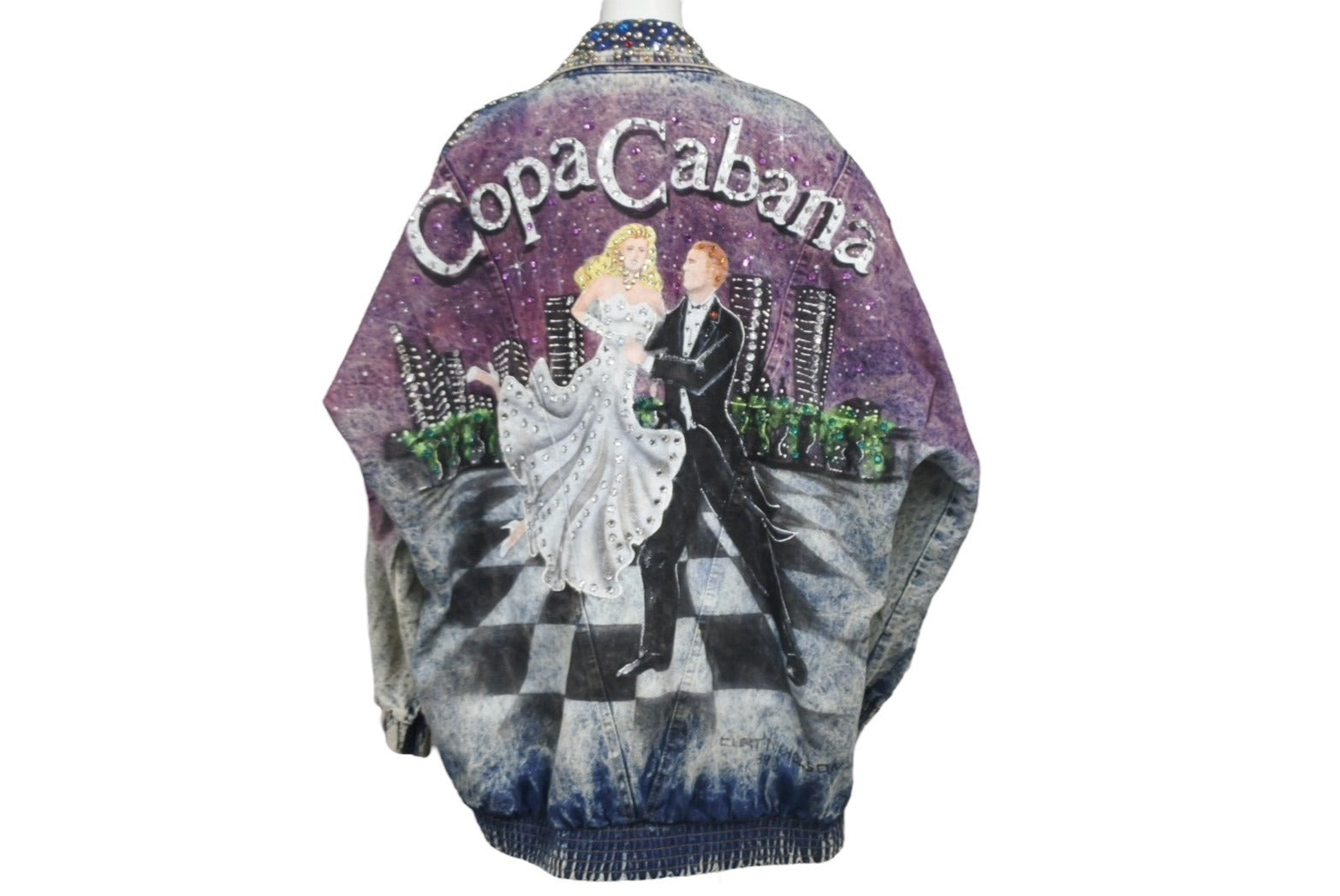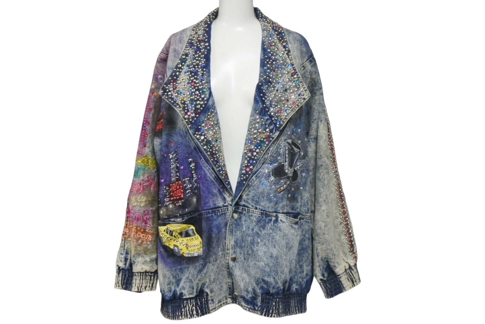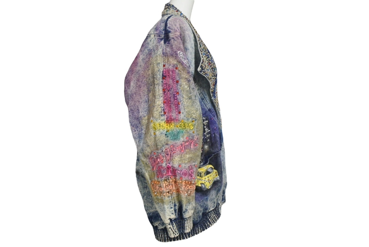 ノーブランド ライダースデニムジャケット CopaCabana コパカバーナ ラインストーン ブルー マルチカラー サイズL 4c068430