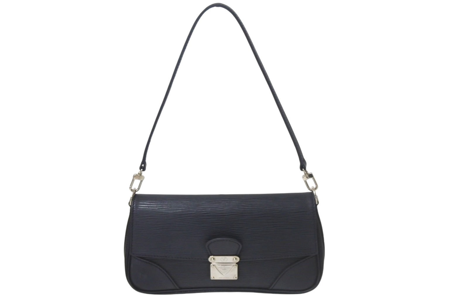 両面、側面、角にスレあり。内側汚れあり。ショルダー部分ラメ付きあり。金具傷と使用感あり。