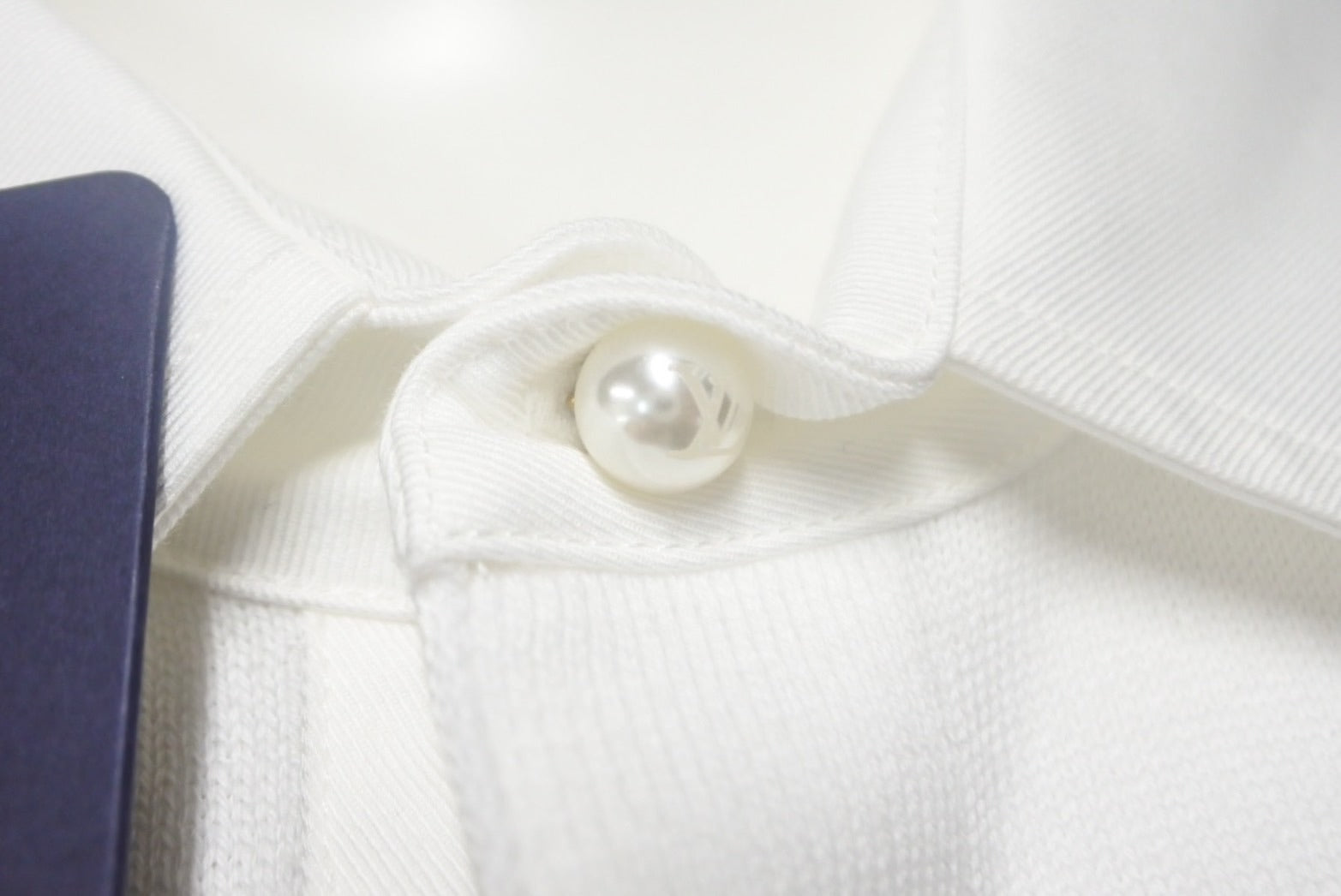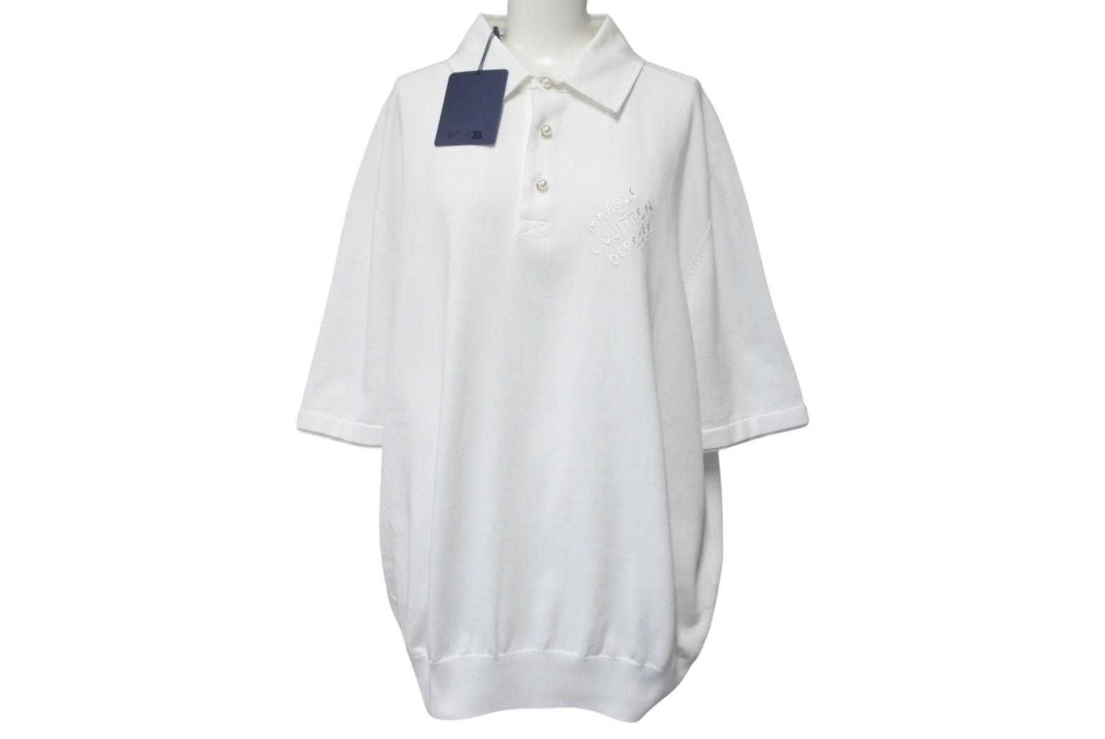 上質なコットンニットで仕立てたホワイトのポロシャツ。コットンポプリンのフォーマルなシャツカラーと左胸を彩る「Marque L.Vuitton déposée」シグネチャーのトーナルな刺繍で、スマートなサートリアル風のひねりを加えました。1番上にだけLV シグネチャーを添えたパール調のボタンがハイブリッドなアイテムに洗練された雰囲気をプラス。カジュアルから上品なスタイルまでエフォートレスに活躍する1着です。