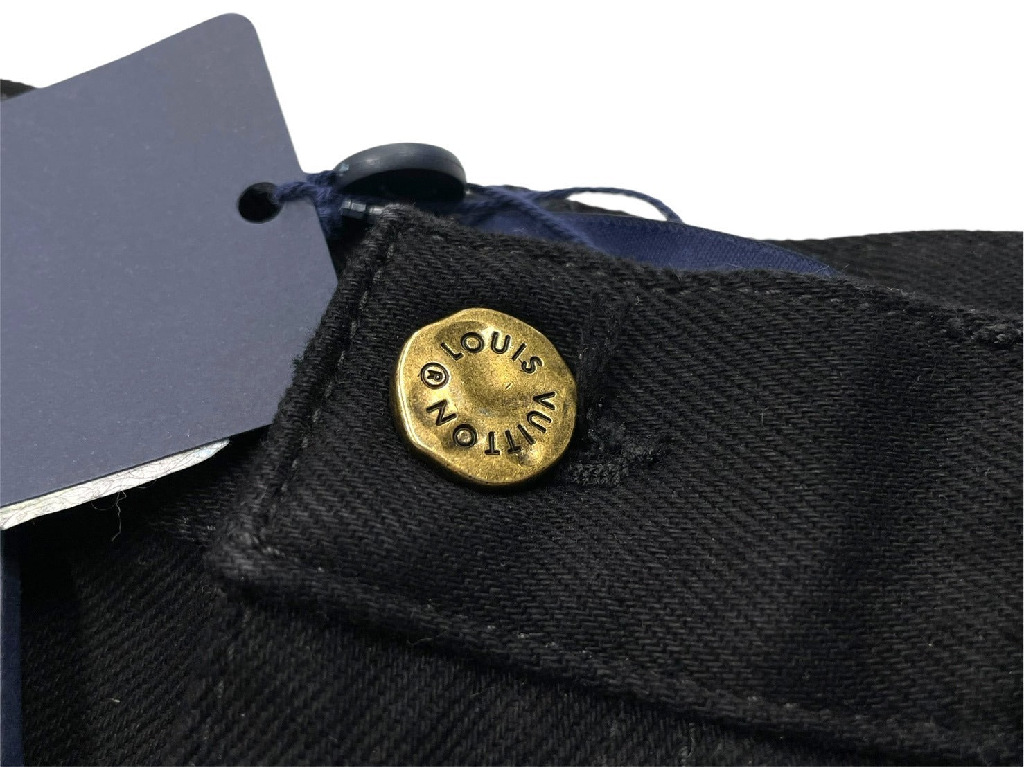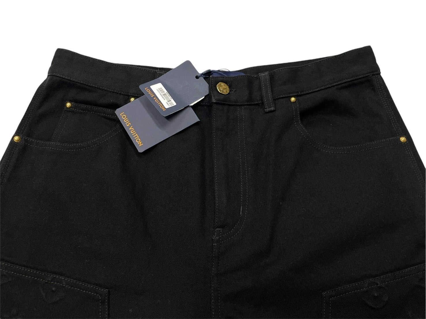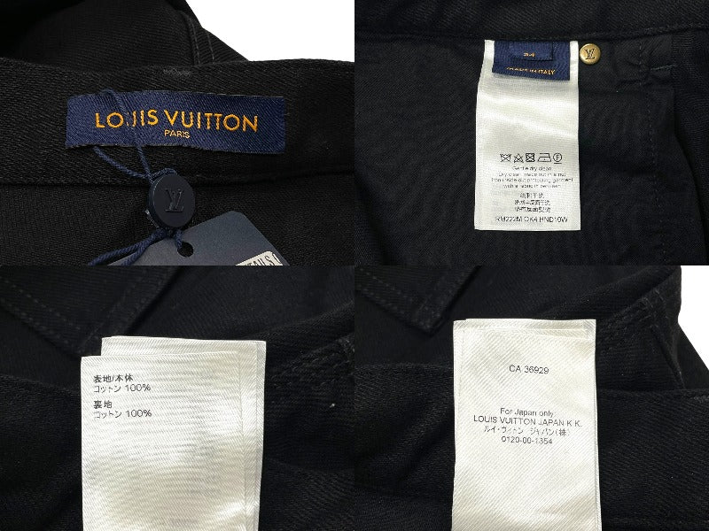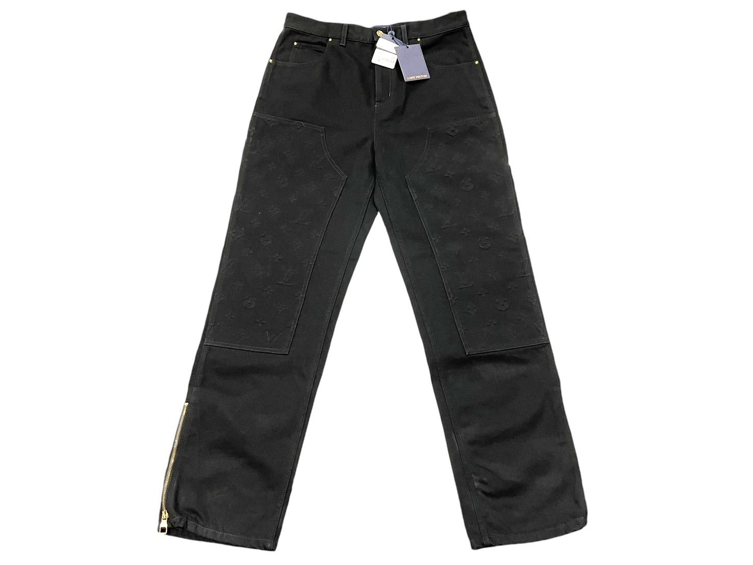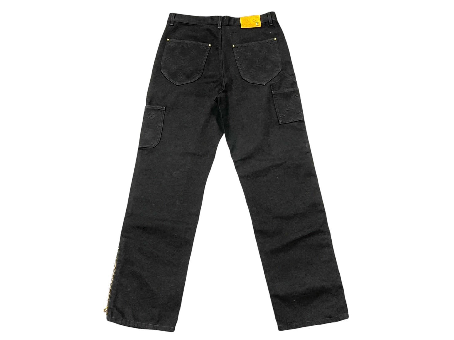 極美品 LOUISVUITTON ルイヴィトン モノグラム ダブルニー デニム カーペンターパンツ イタリア製 ブラック サイズ34 中古 4c068988