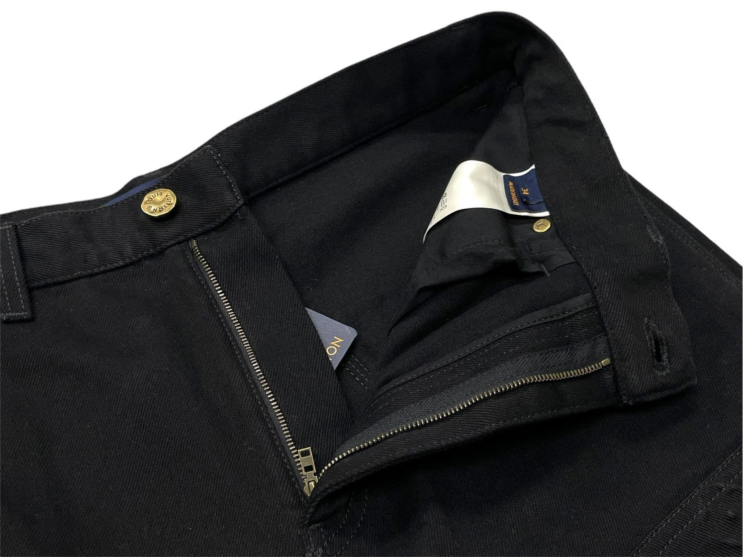 このウォッシュ加工を施したブラックデニムのカーペンターパンツは、ストリート ラグジュアリーのルックに欠かせないクラシカルなアイテムです。