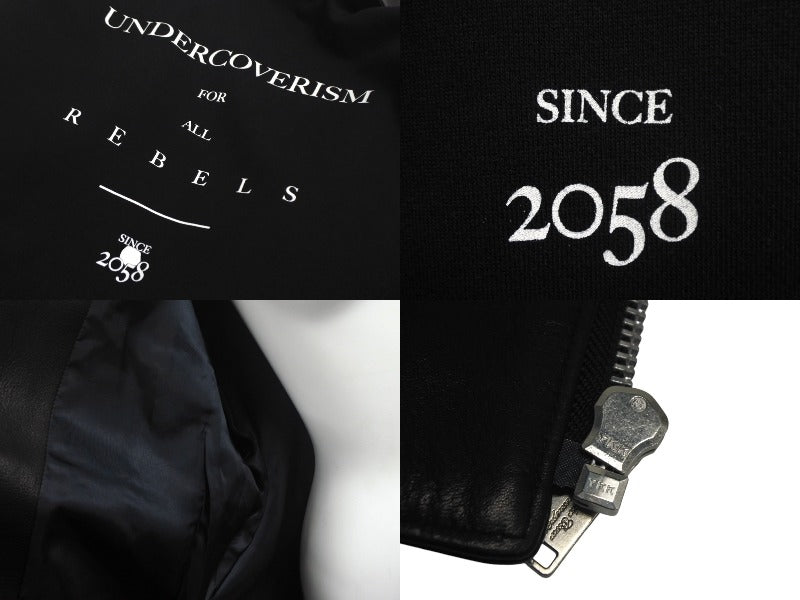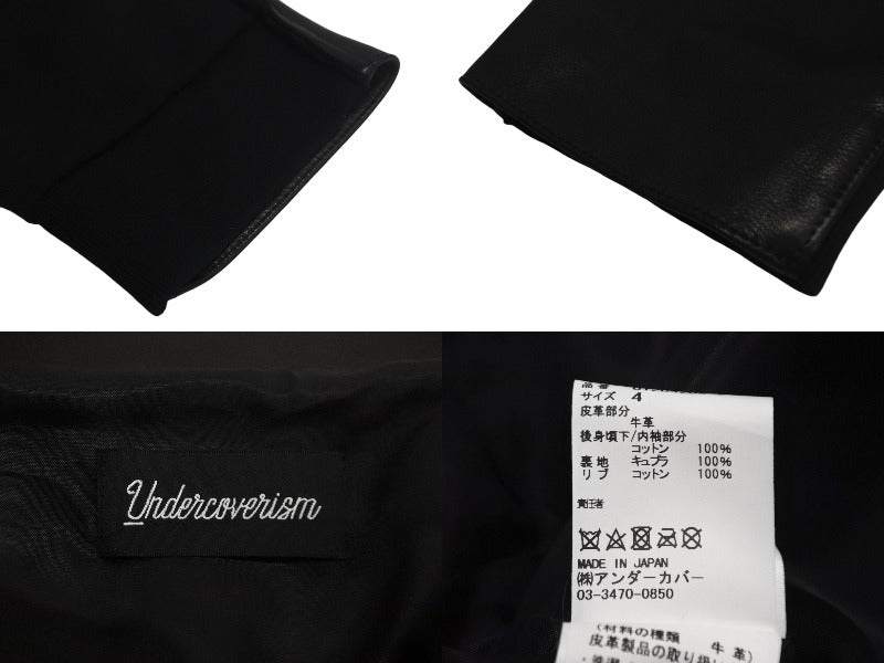 極美品 UNDERCOVER ISM アンダーカバーイズム 後SWEAT切替レザー ライダースジャケット UI2B4205 サイズ4 牛革 ブラック 22AW 中古 4c069207
