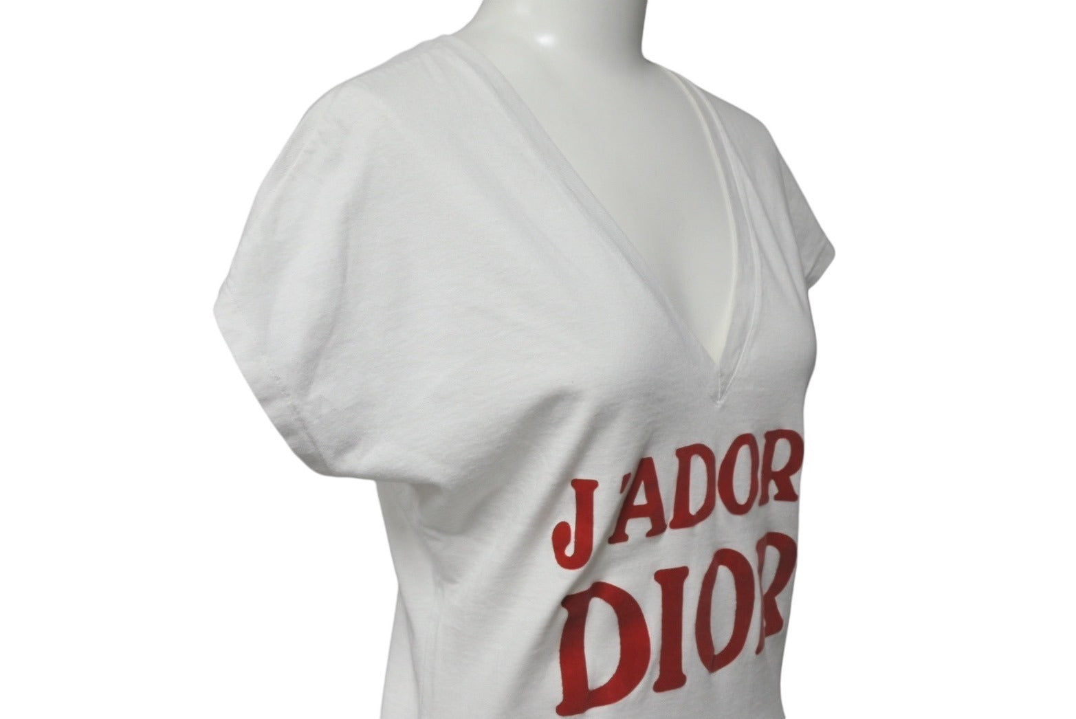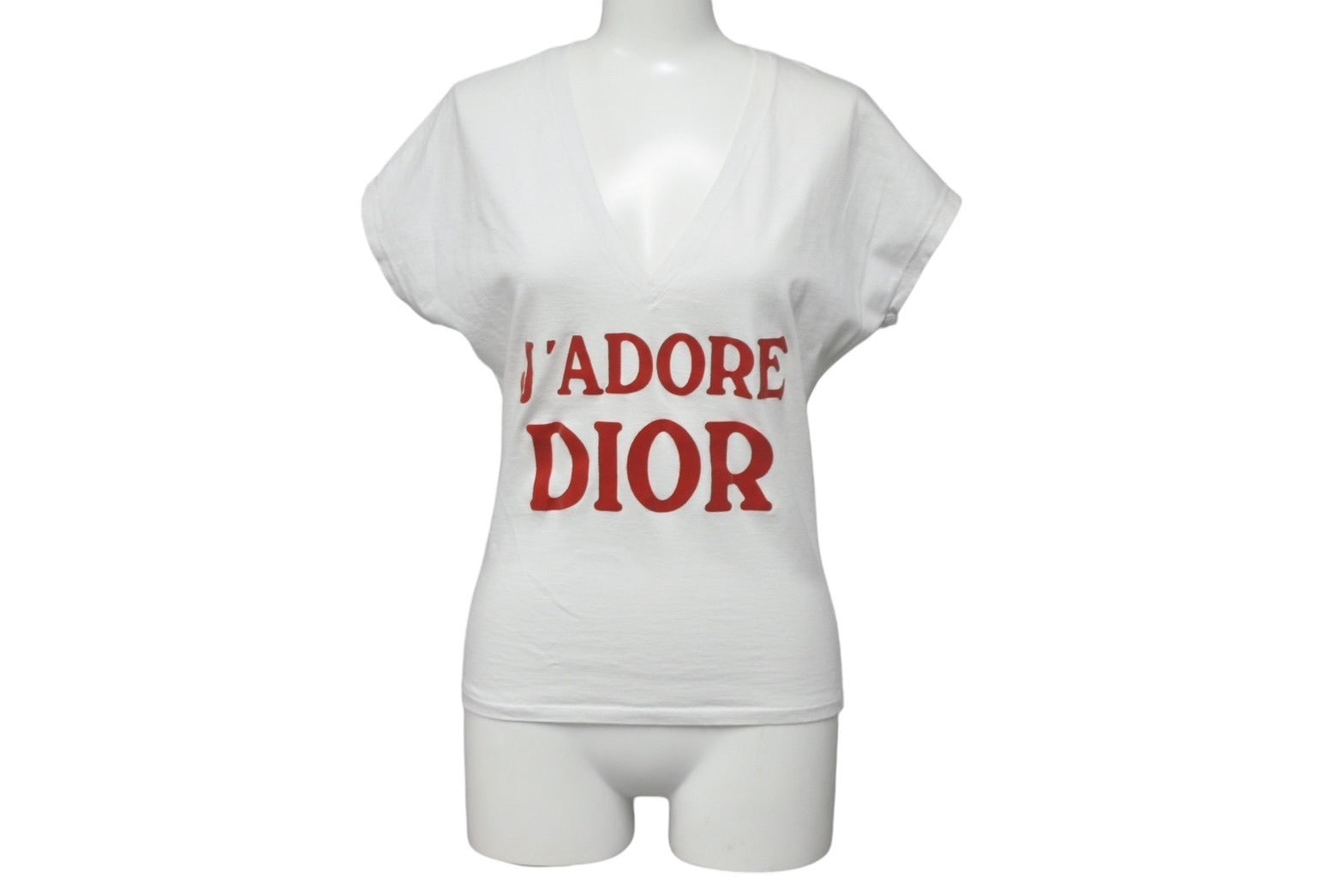 Christian Dior クリスチャンディオール J'ADORE ジャドール Vネック ノースリーブ 3H16155400 サイズ38 コットン ホワイト レッド 美品 中古 4c069232
