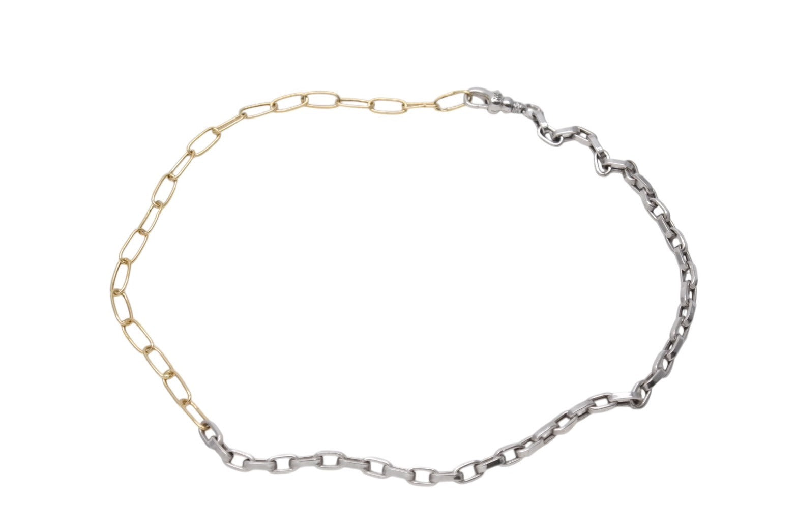 ペーパークリップチェーンとアンカーチェーンを組み合わせた、一本で主役級の商品です。