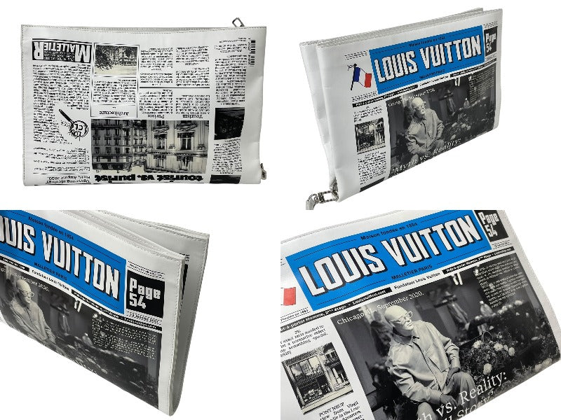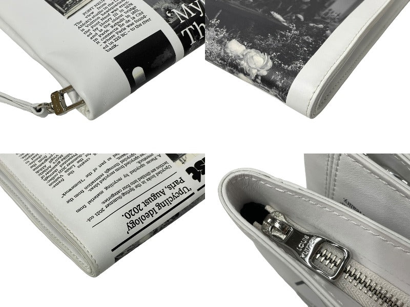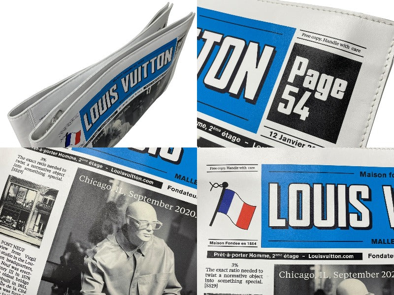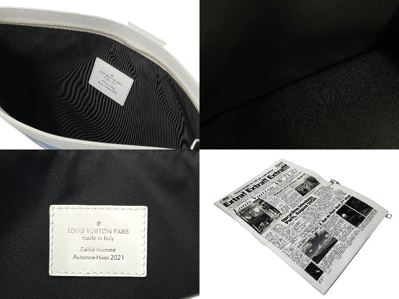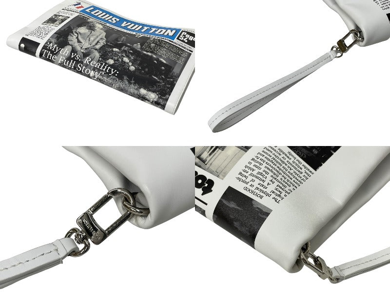 極美品 LOUISVUITTON ルイヴィトン ニュースペーパー二つ折りレザークラッチバッグ M80849 ホワイト ブルー 中古 4c069763