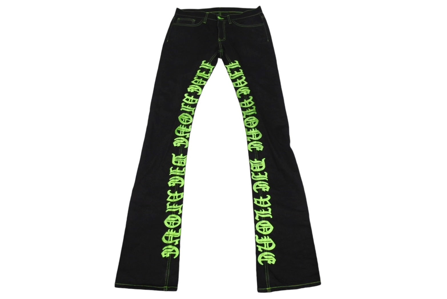 Endless Denim エンドレスデニム デニムパンツ 刺繍 ブラック グリーン コットン サイズS 美品 中古 4c069853