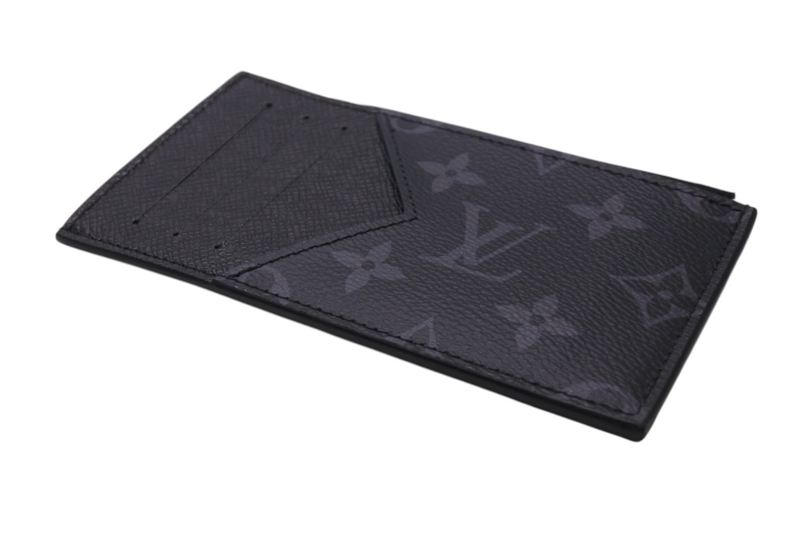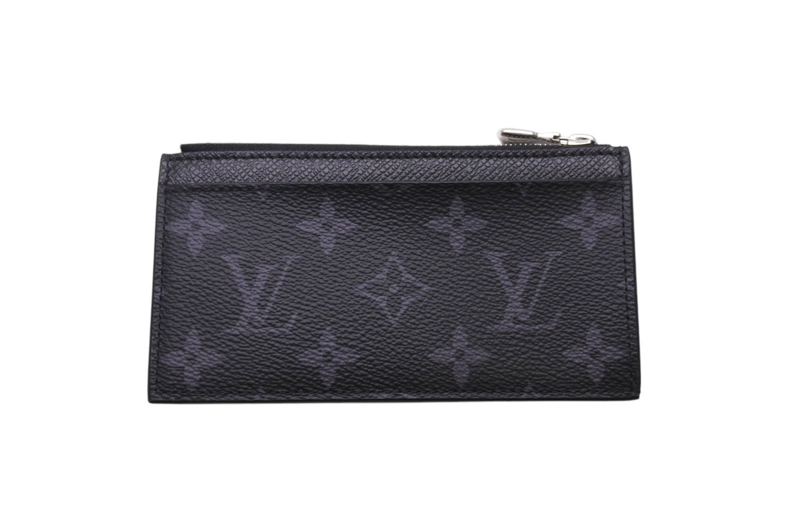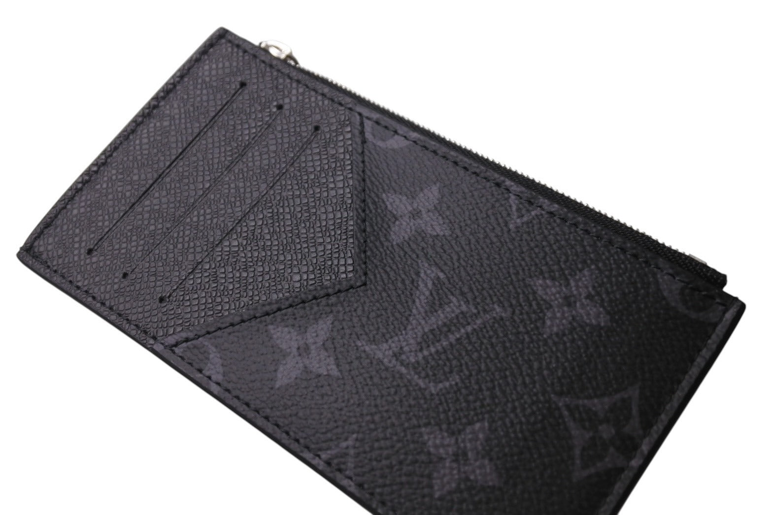 モノグラムキャンバスとタイガレザーの統一感のある色合いが、洗練されたデザインを引き立てる「コインカードホルダー」。内側には4つのクレジットカード用スロット、紙幣やレシートを収納できるコンパートメント、シルバーカラーの引き手が特徴のファスナー付きコインケースを備えています。