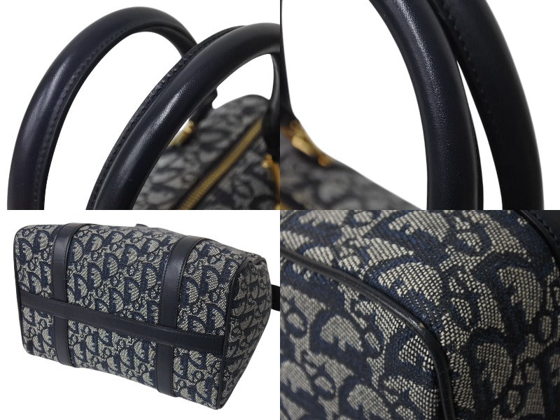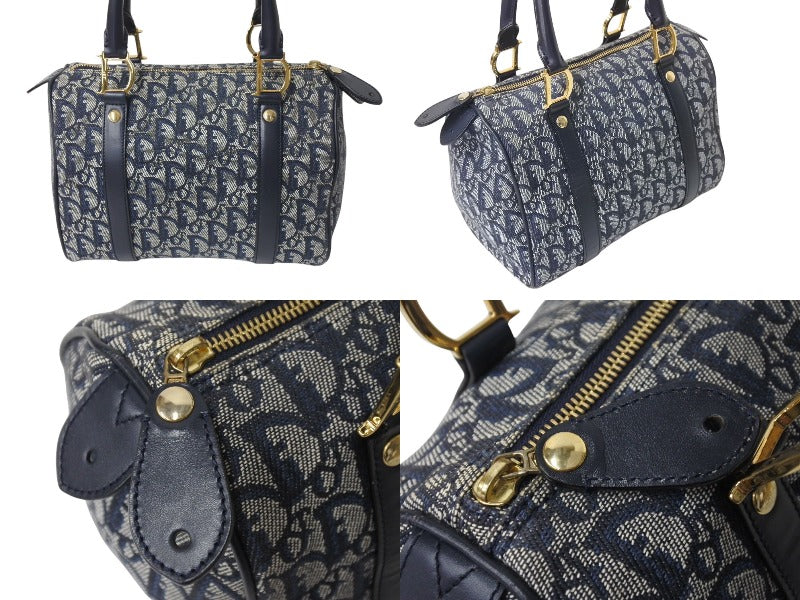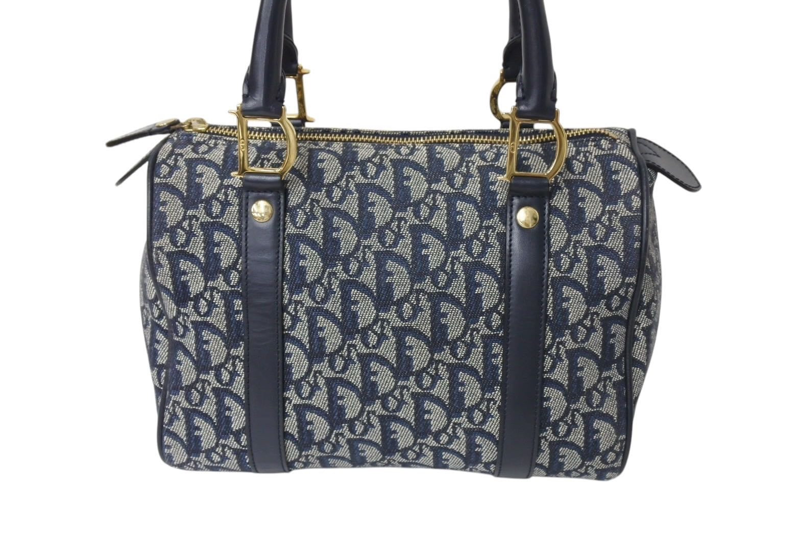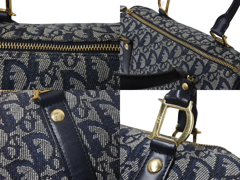 極美品 Christian Dior クリスチャンディオール ハンドバッグ 25cm トロッター ガリアーノ期 04年 ネイビー ゴールド 中古 4c070956