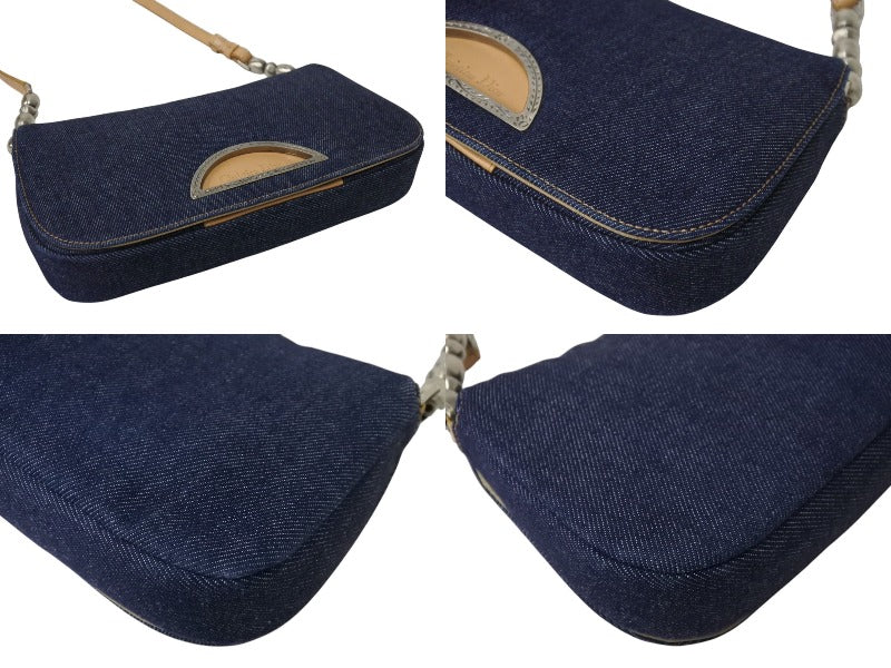 Christian Dior クリスチャンディオール ワンショルダーバッグ マリスパール デニム インディゴブルー シルバー 金具 美品 中古 4c070957