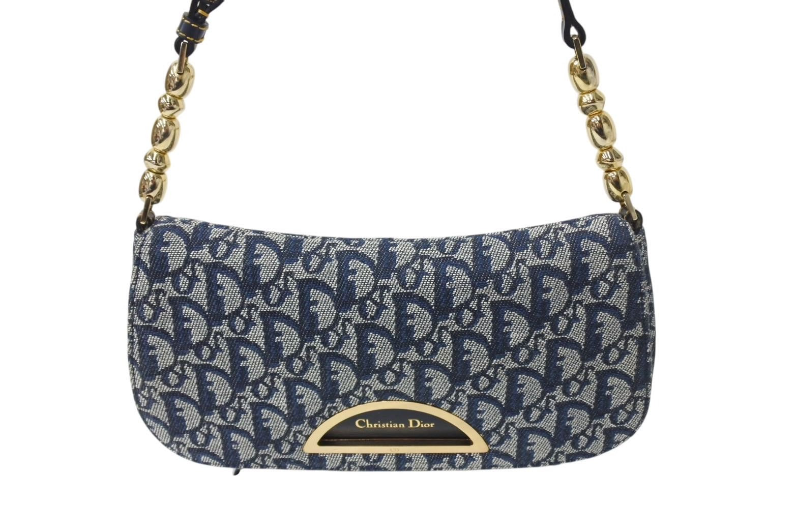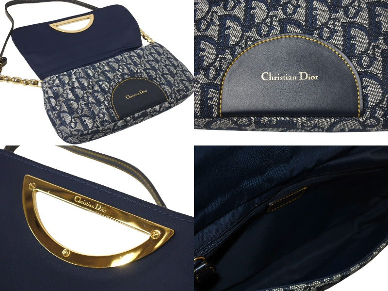 極美品 Christian Dior クリスチャンディオール マリスパール ワンショルダーバッグ トロッター ネイビー ロゴ キャンバス 中古 4c071074