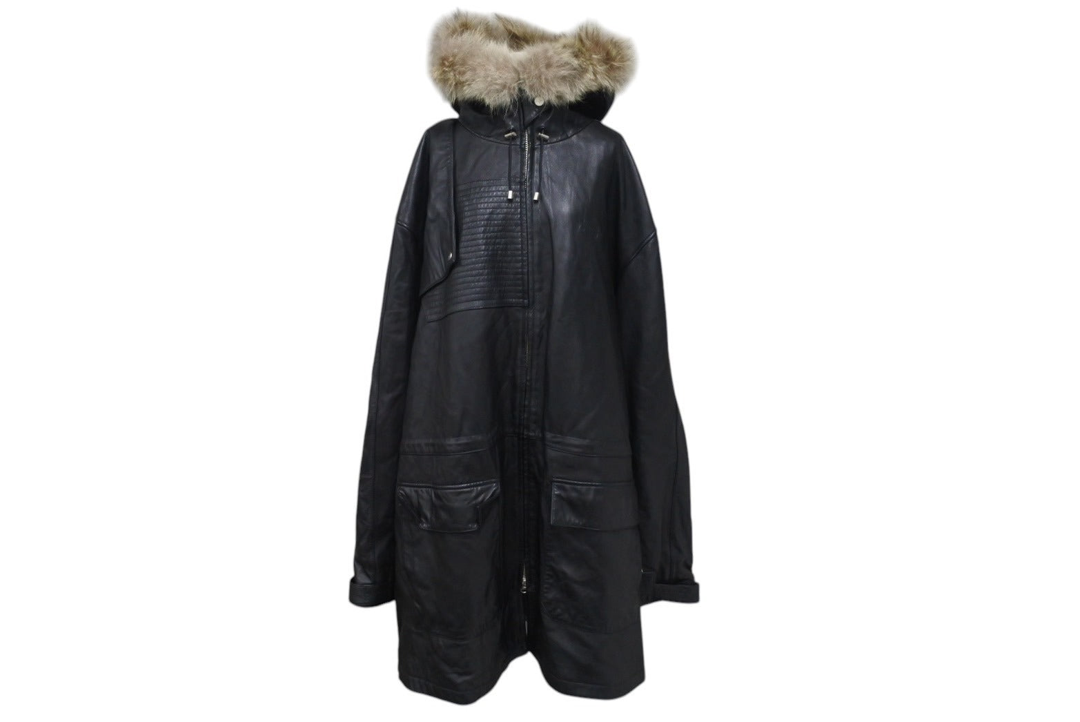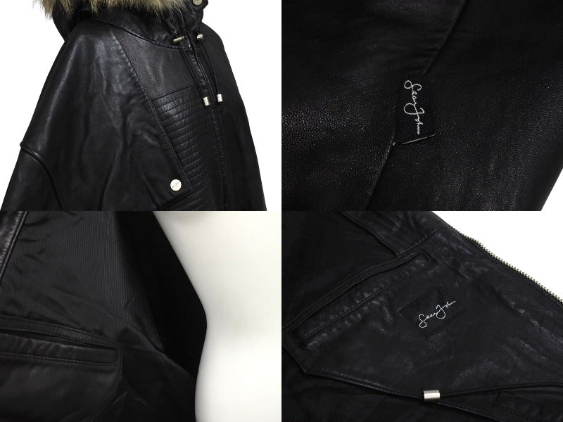 SEAN JOHN ショーンジョン レザーコート サイズ3XL ブラック レザー ファー ロゴ エンボス加工 美品 中古 4c071676