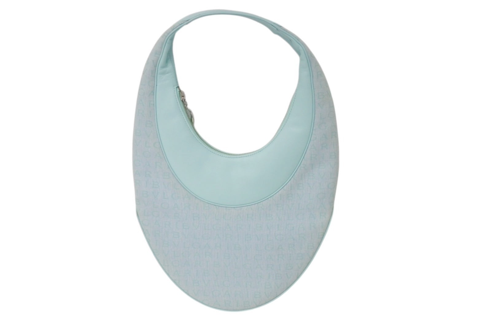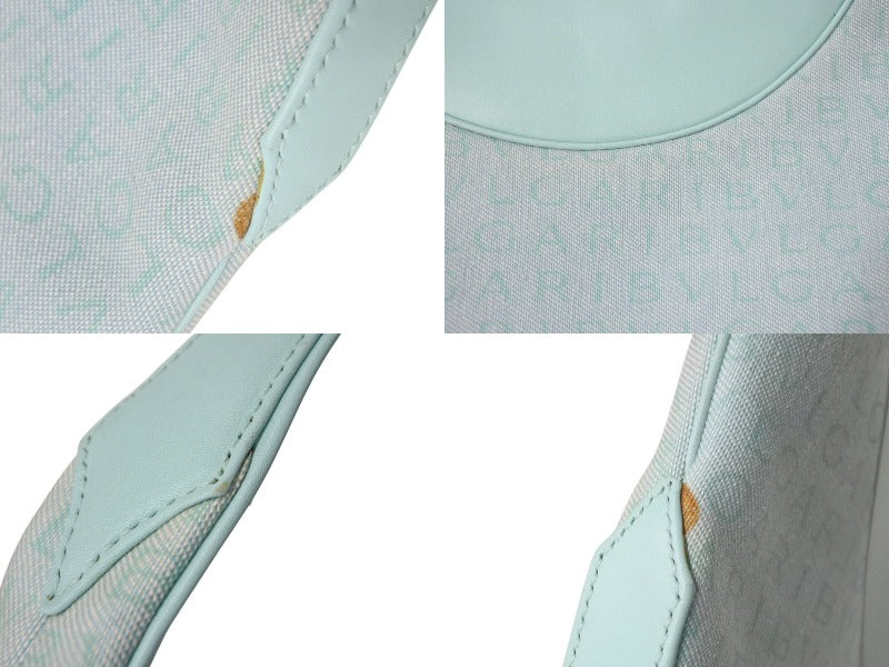 BVLGARI ブルガリ ロゴマニア ワンショルダーバッグ ハンドバッグ キャンバス レザー ターコイズブルー シルバー 美品 中古 4c071838
