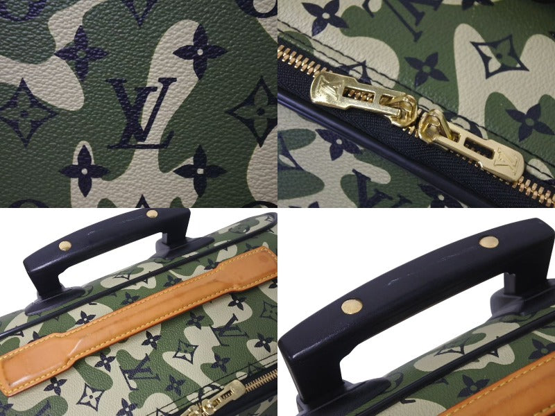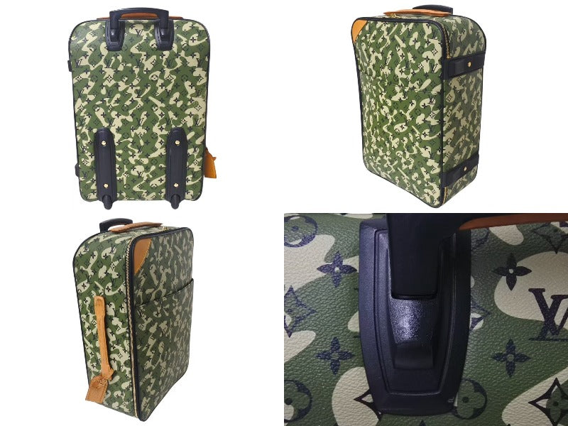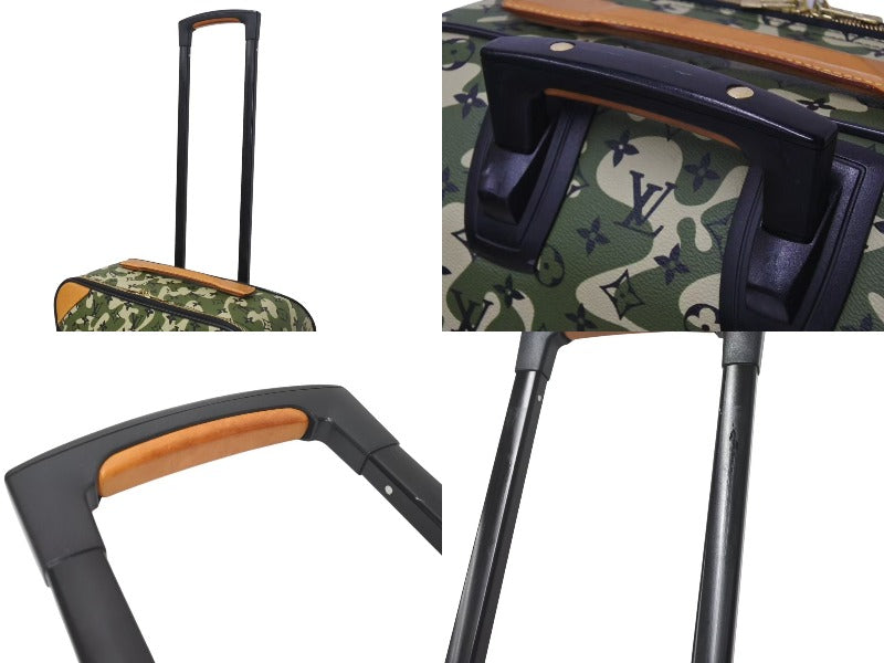 マーク・ジェイコブスと村上隆のコラボレーション、定番のモノグラムラインと迷彩カラーをデザインにした斬新さが魅力の、モノグラモフラージュ・ラインの、収納に優れ、キャスターが付いているので持ち運びにも便利なトラベルキャリーバッグ。