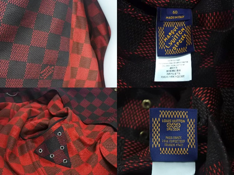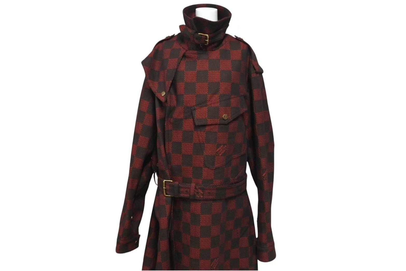 SS24 ショーのこのロング ユーティリティ コートは、大胆な効果のあるグラフィック ダミエ ポップ デニム ジャカードで作られています。ベルト付きウエストがシルエットを強調し、LV Lovers のロゴが背面全体にスタッズで施されています。「Marque L.Vuitton déposée」のシグネチャーがモチーフにさりげなく組み込まれ、洗練された仕上がりになっています。