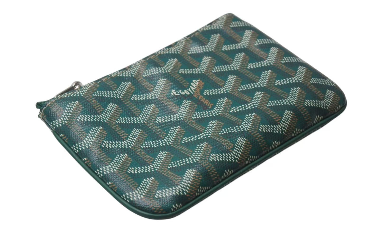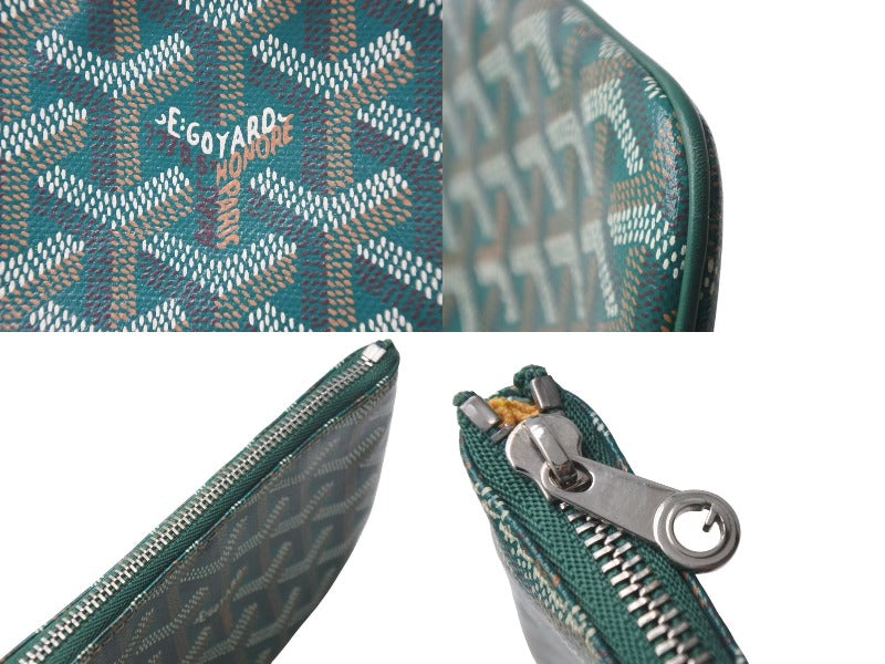 新品同様 GOYARD ゴヤール セナ ミニ ポーチ SENAT2MINTY09CL09P レザー PVC グリーン ヘリンボーン 中古 4c073545