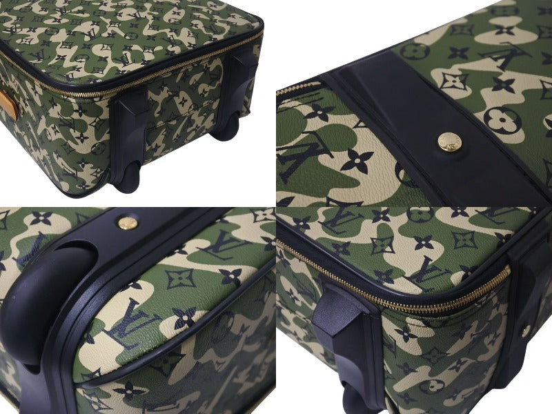 マークジェイコブスと村上隆のコラボレーション、定番のモノグラムラインと迷彩カラーをデザインにした斬新さが魅力の、モノグラモフラージュラインの、収納に優れ、キャスターが付いているので持ち運びにも便利なトラベルキャリーバッグ。