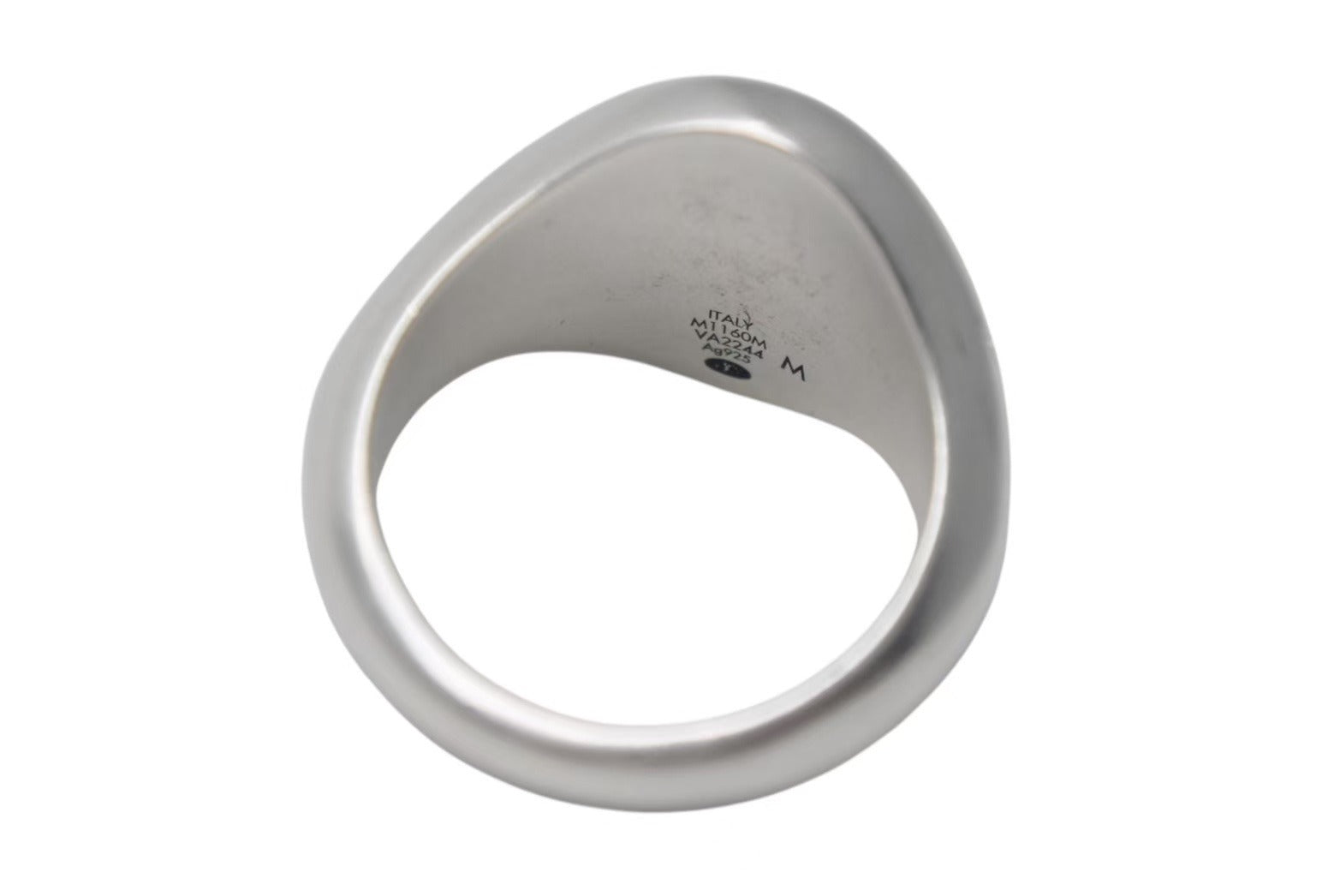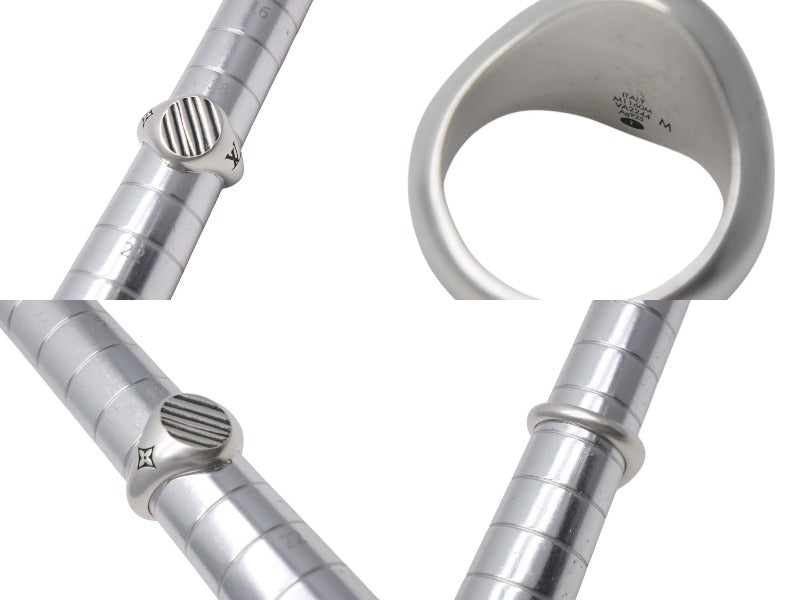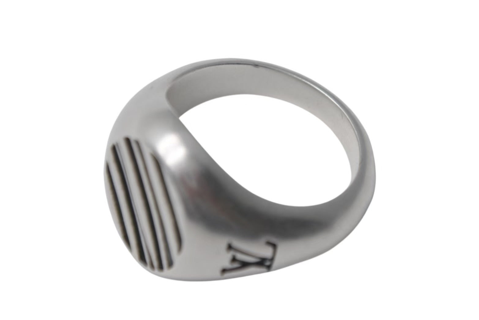 シルバーカラーで仕上げ、メゾンのシグネチャー・マテリアルであるエピ・レザーのグレインを想わせる装飾をあしらった丸いセンター部分が特徴の「リング・LV エピ」。ディテールの片側にはLV イニシャルが、もう片側にはモノグラム・フラワーがあしらわれています。3つの装飾すべてにブラックのパティーナ加工を施してアンティーク調に仕上げました。快適な着け心地と現代的な表情が魅力。