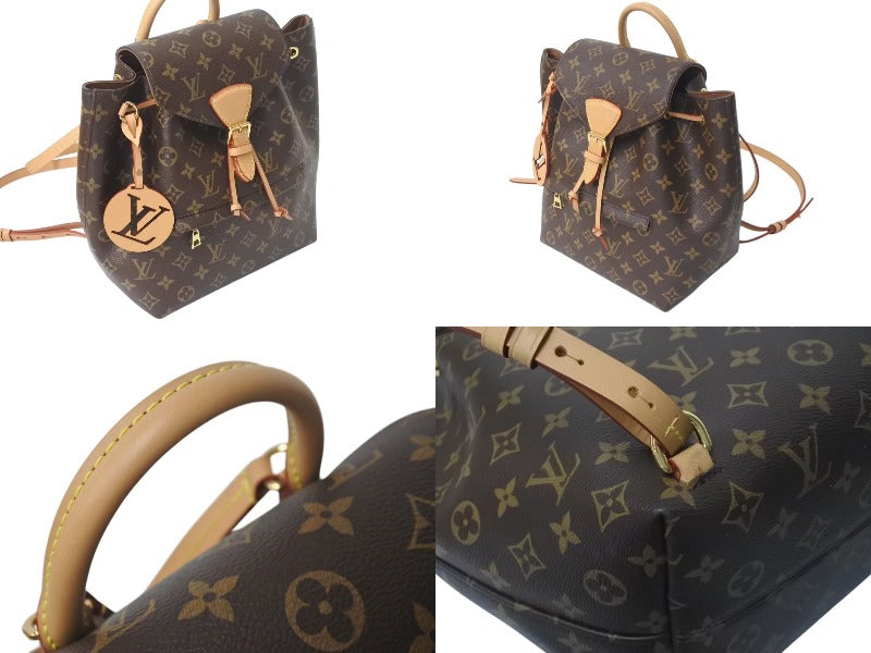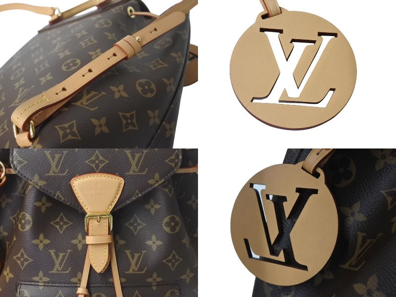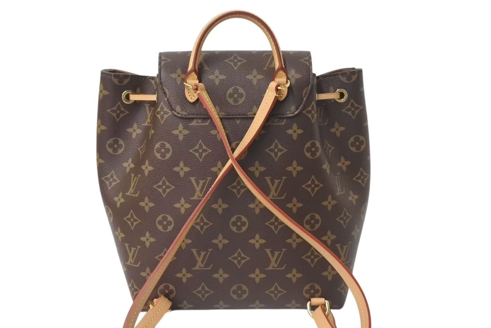 極美品 LOUIS VUITTON ルイヴィトン モンスリNM リュック バックパック M45501 PVC ヌメ革 ブラウン ゴールド金具 中古 4c074436