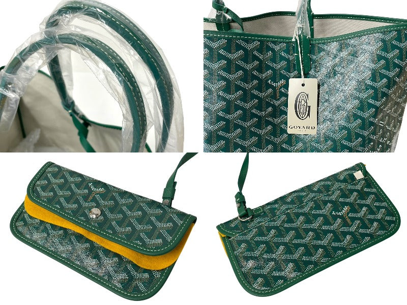 新品未使用 GOYARD ゴヤール サンルイPM バッグ トートバッグ STLOUIPMLTY09CL09P PVC レザー ヘリンボーン グリーン 中古 4c074785