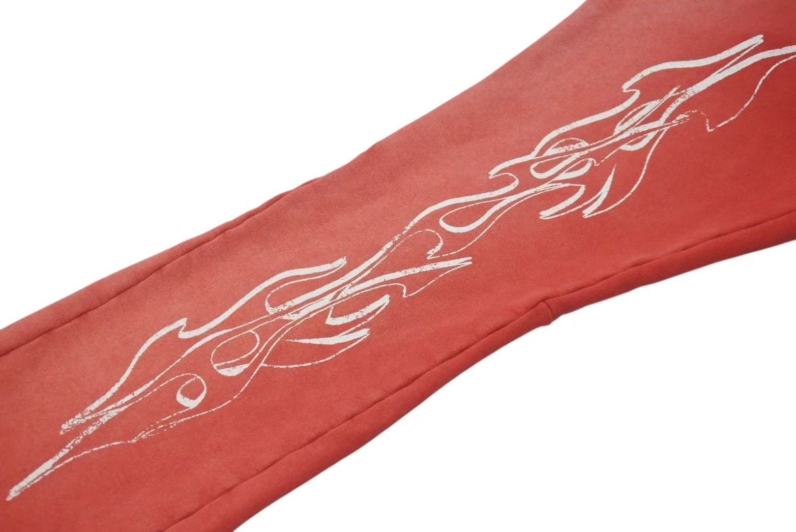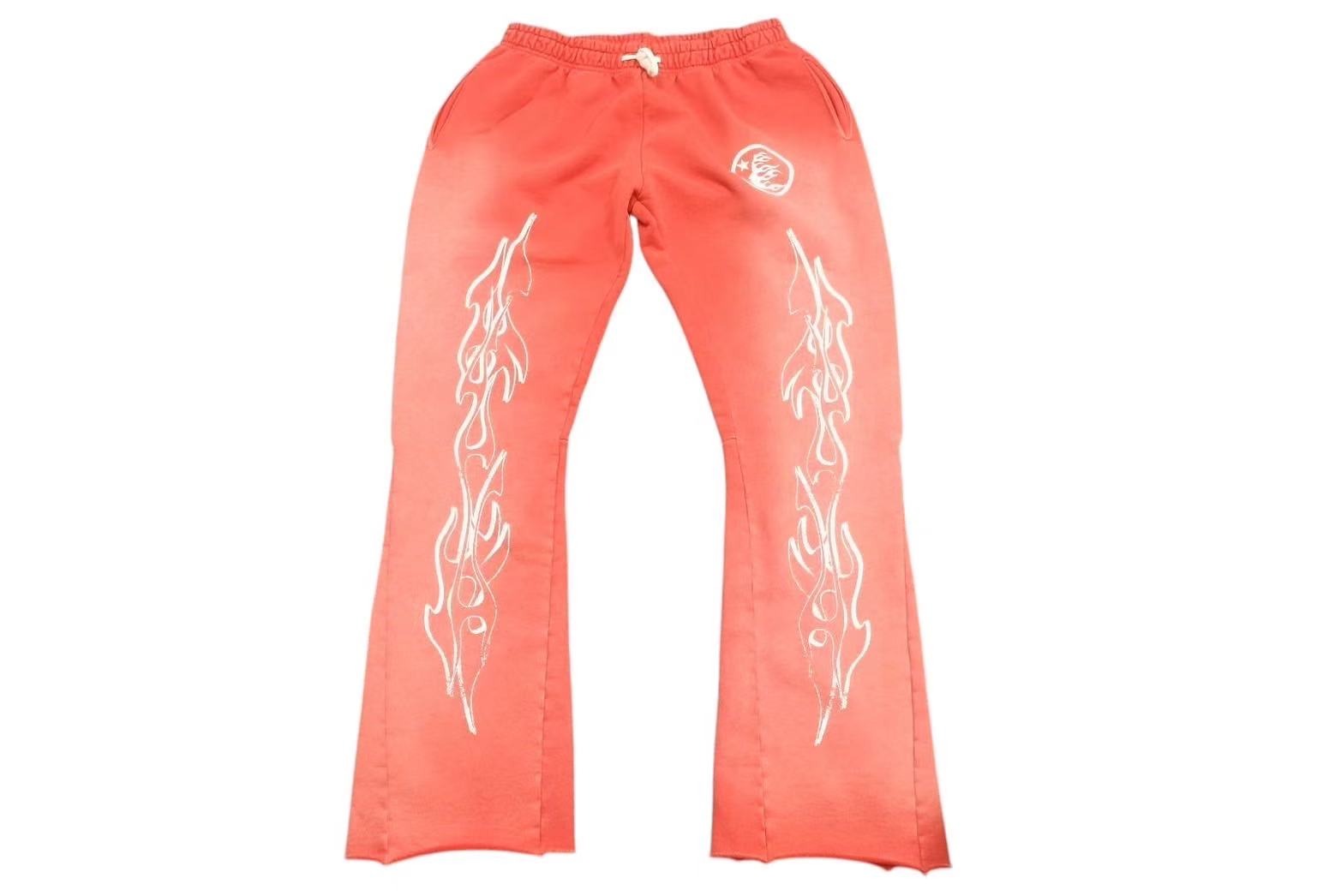 新品未使用 HELLSTAR ヘルスター スポーツ スウェットパンツ E1A38A84 サイズXL レッド フレイムパターン ウォッシュド加工 中古 4c075185