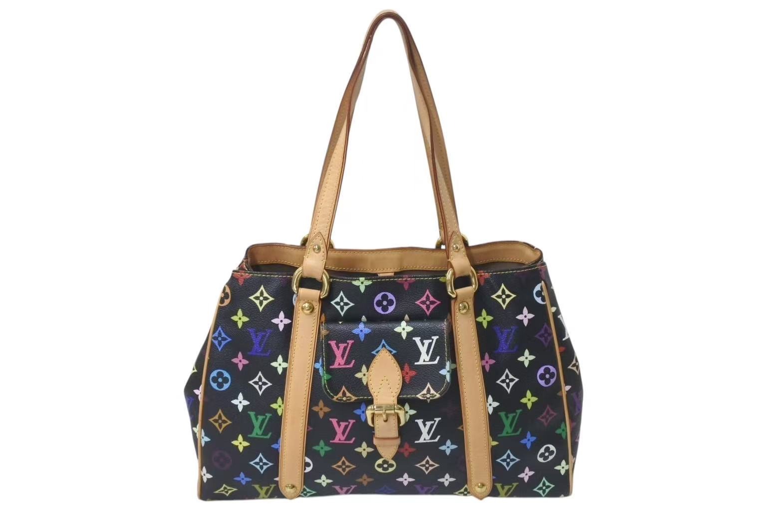 開閉はオープンタイプのフック式となり、バッグ内部にはファスナーポケットと携帯フォルダーがセットされております。メインカラーがノワール(黒色)となり、マルチカラー特有となる鮮やかな色使いが一層際立つデザイン性となります。