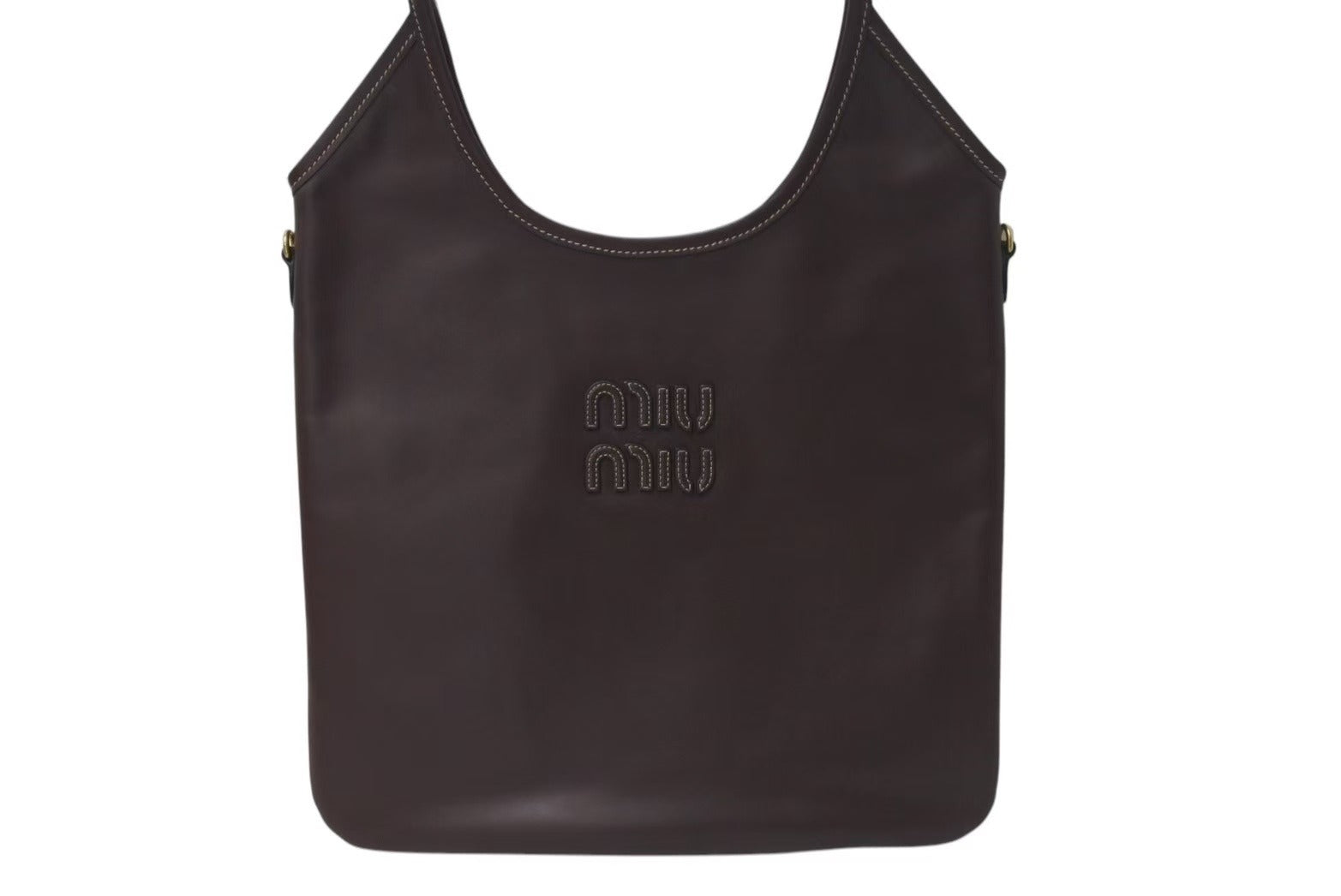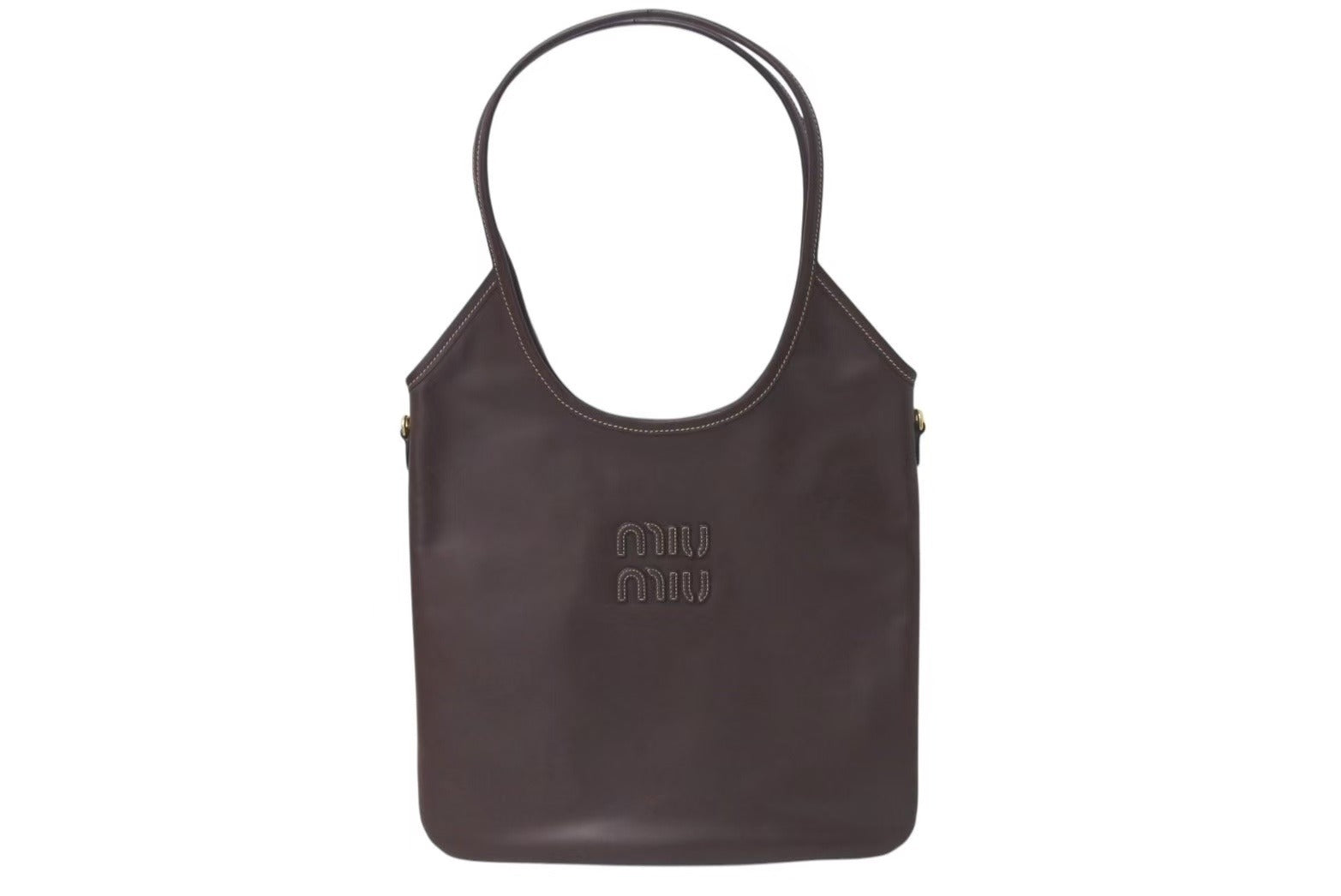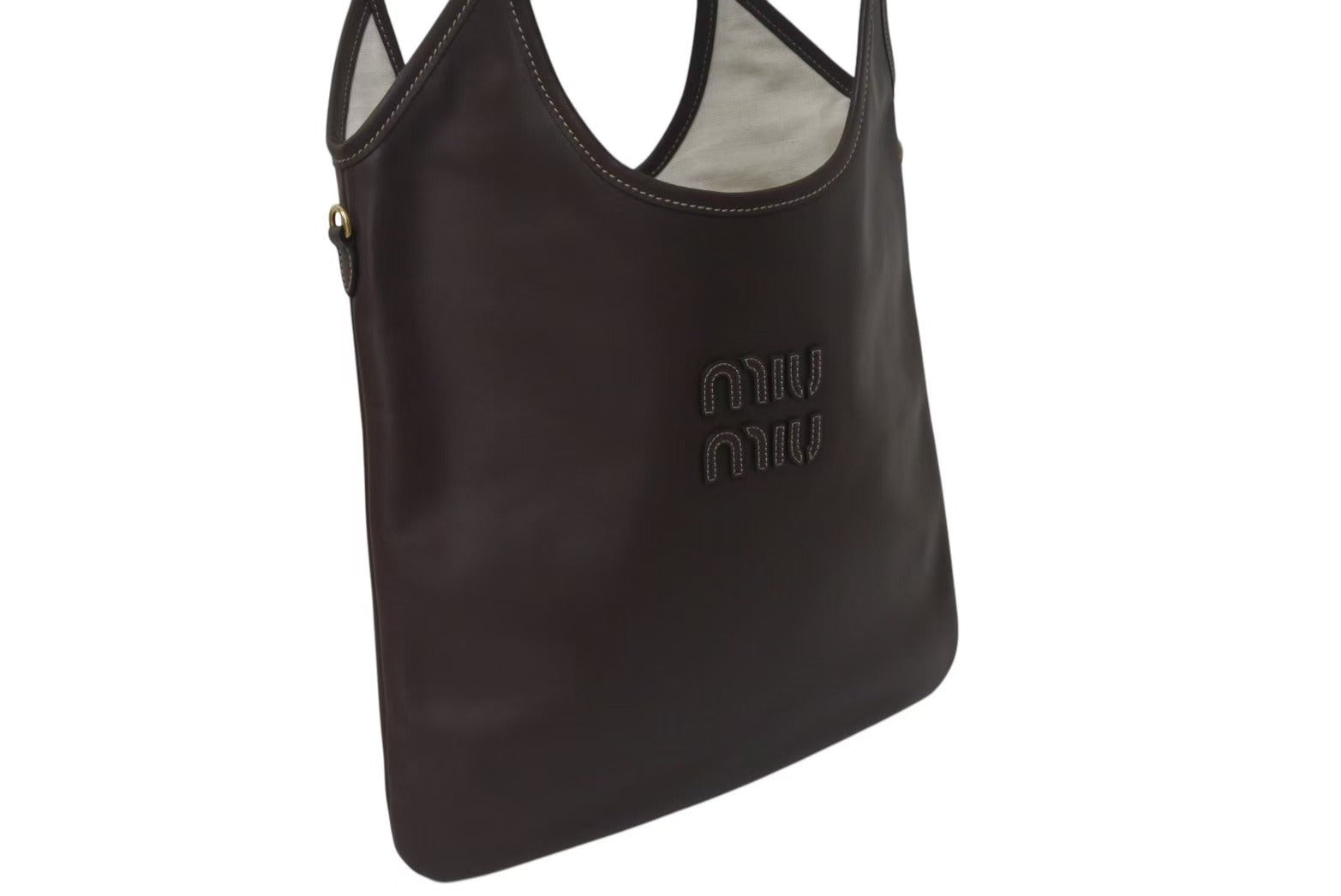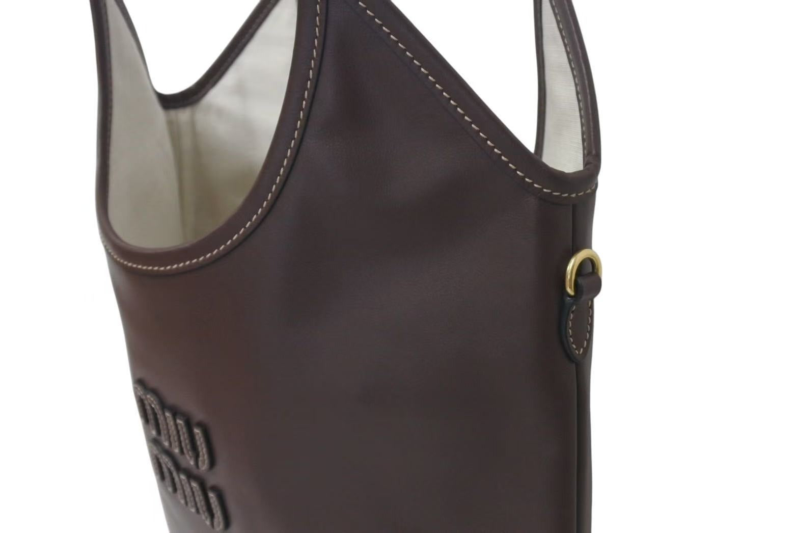 MIU MIU ロゴが一目でミュウミュウとわかるアイコニックなアクセントを演出しています。