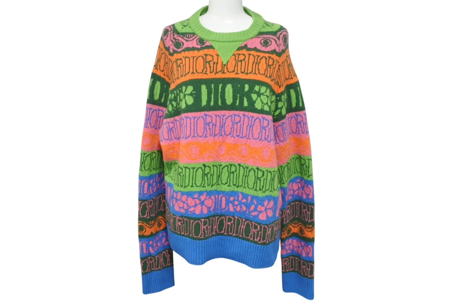 極美品 Dior ディオール × Shawn Stussy ショーンステューシー ウールジャガード セーター 033M622AT167 サイズL 中古 4c075955