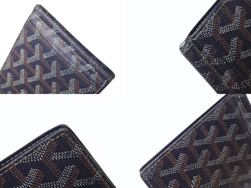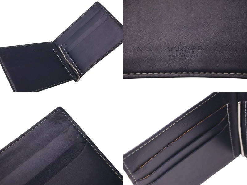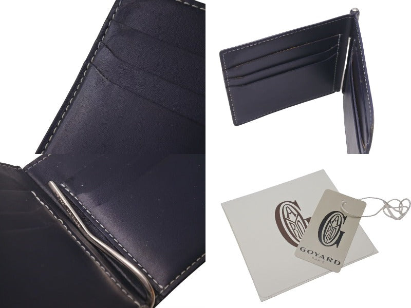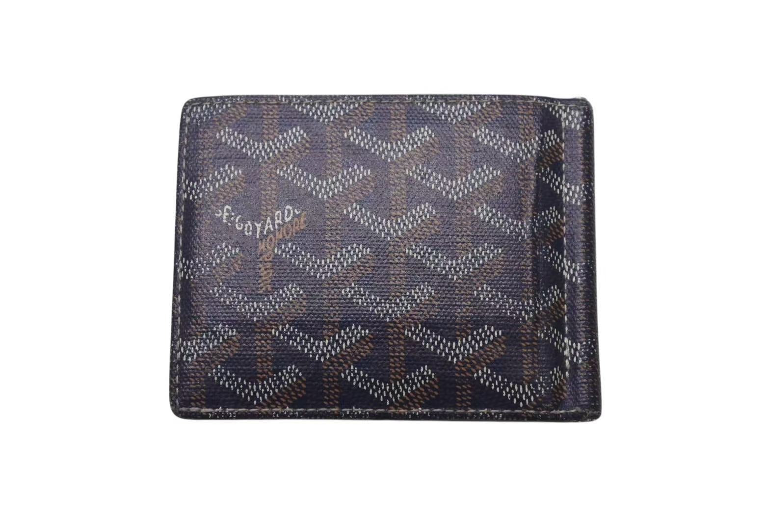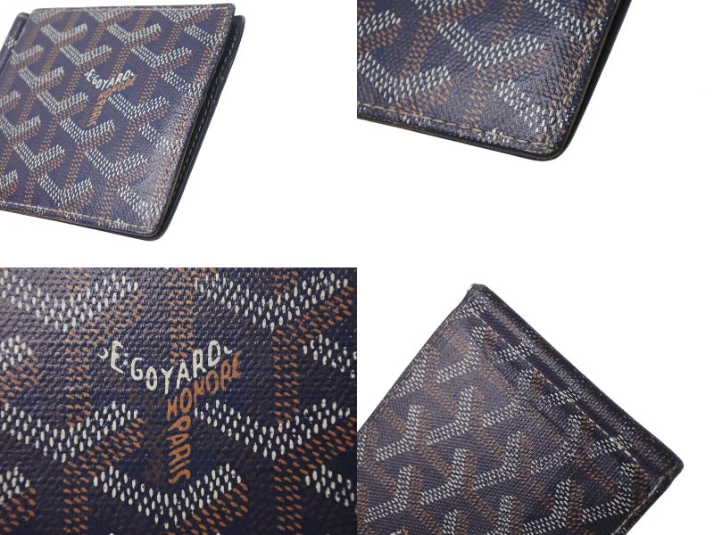 GOYARD ゴヤール 二つ折り財布 サントマ マネークリップ カードケース ネイビー PVC レザー 美品 中古 4c076010
