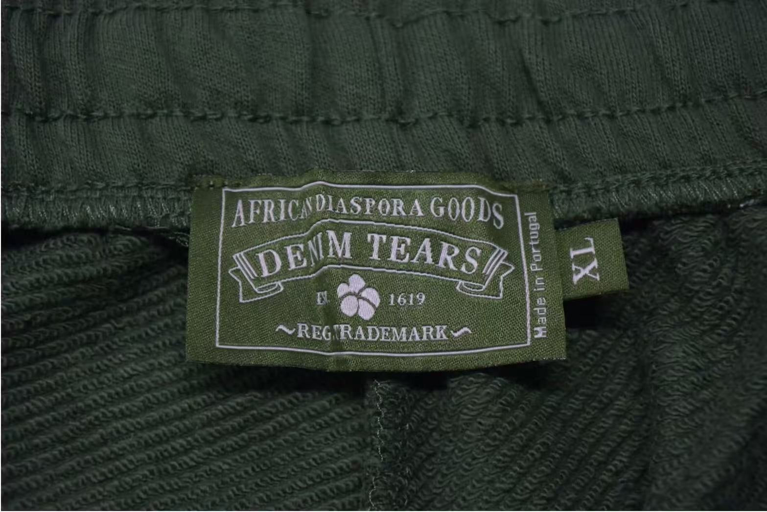 新品未使用 DENIM TEARS デニムティアーズ スウェットパンツ DTSPG2023 ポルトガル製 コットン カーキ ホワイト サイズXL 中古 4c076148