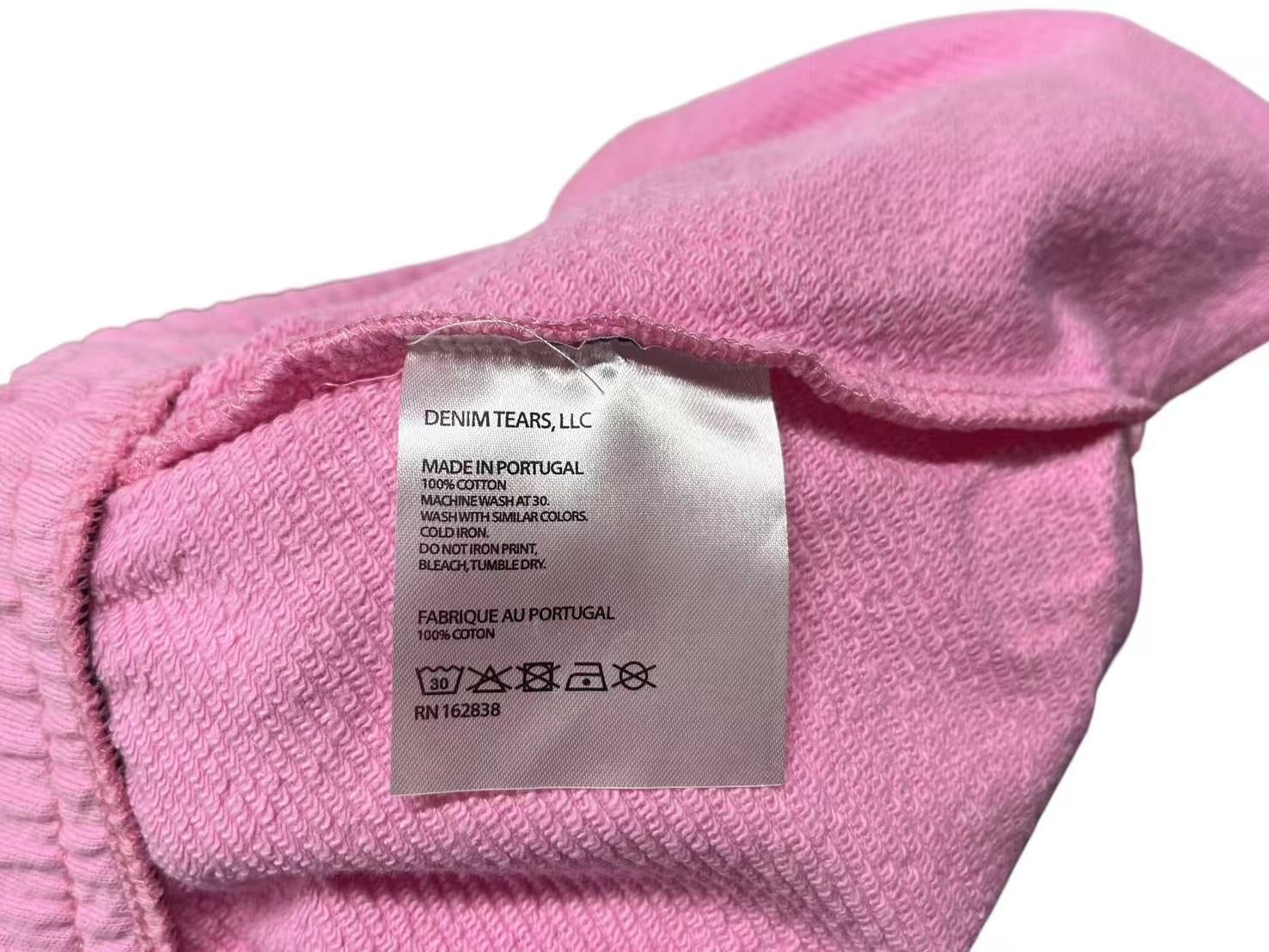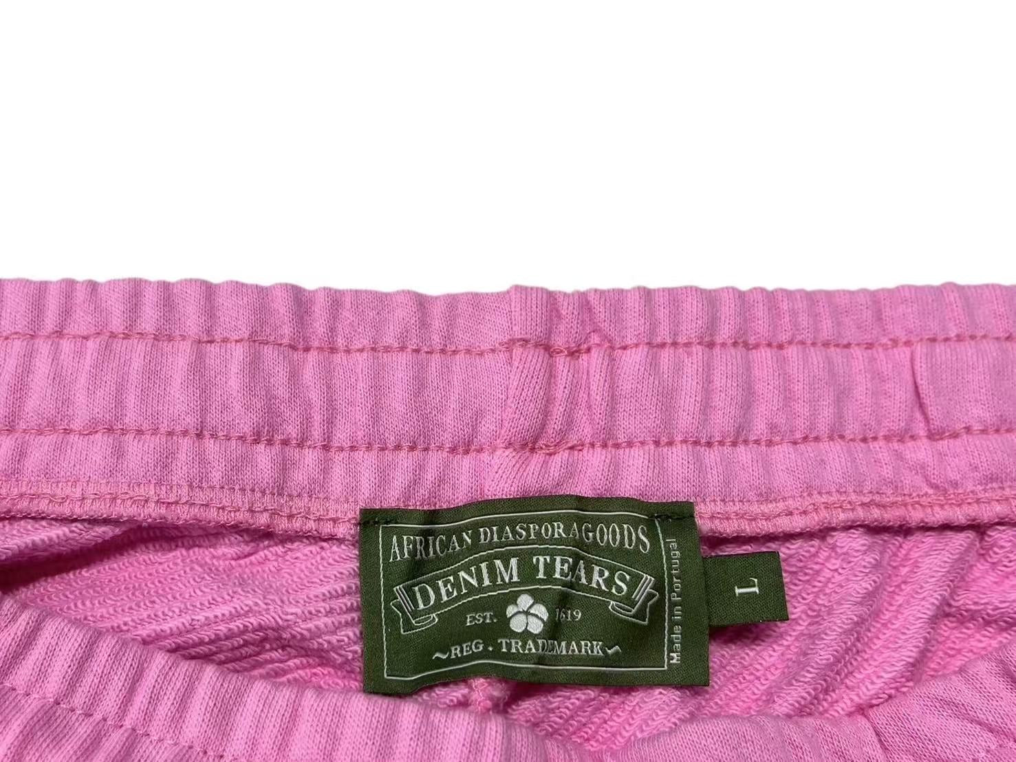 新品未使用 DENIM TEARS デニムティアーズ スウェットパンツ DTSPG2023 ポルトガル製 コットン ピンク ホワイト サイズL 中古 4c076151