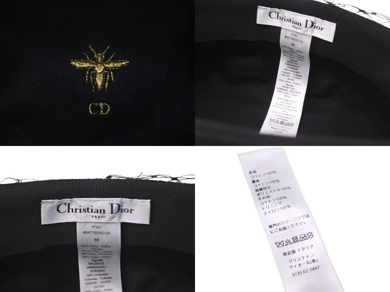 Christian Dior クリスチャンディオール ネットチュールキャスケット 86ATY920G130 2023SS コットン ブラック 59 美品 中古 59831