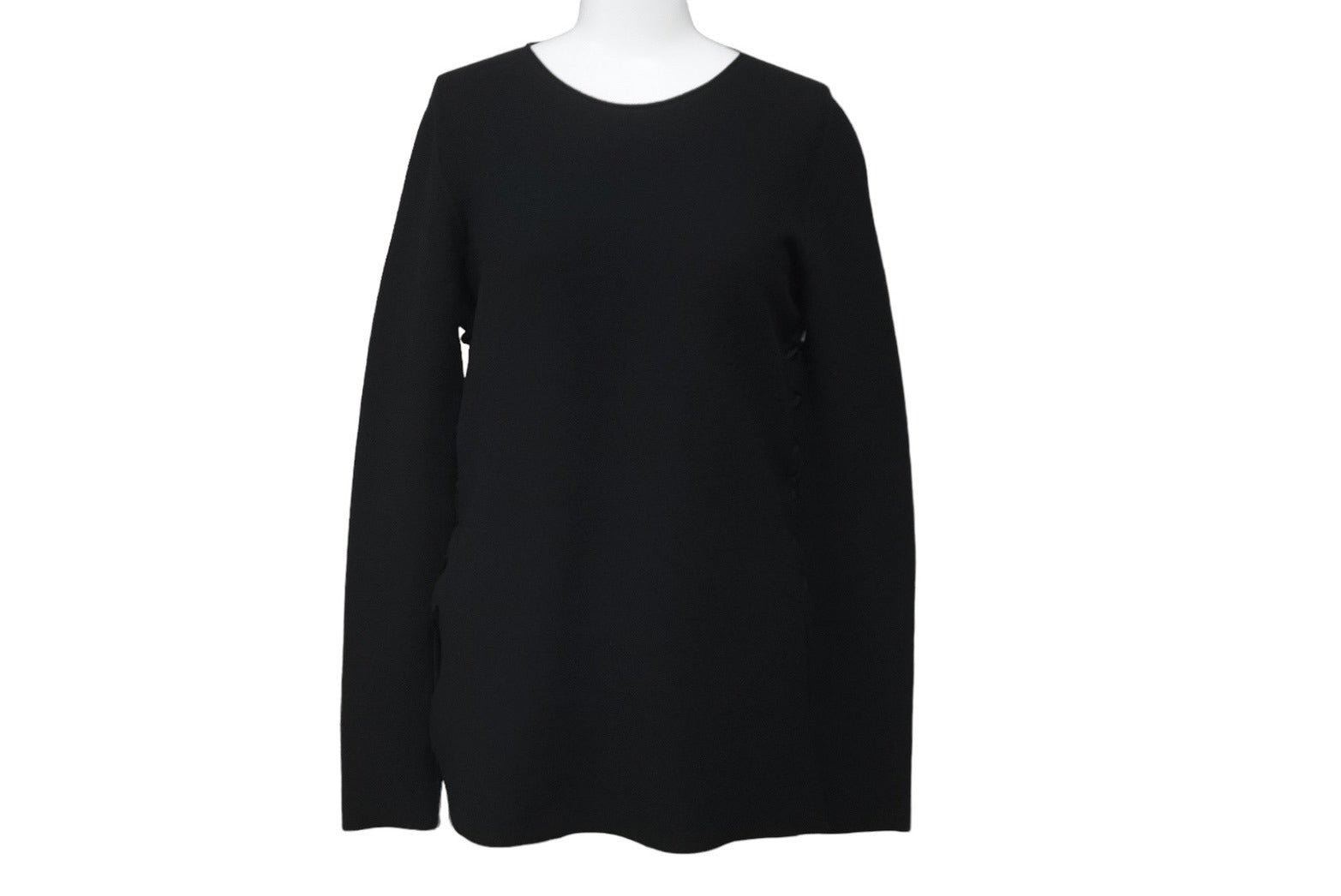 ザロウらしい高級感溢れる品のあるアイテムで側面にドロストデザインが施されたギミックのあるニットです。