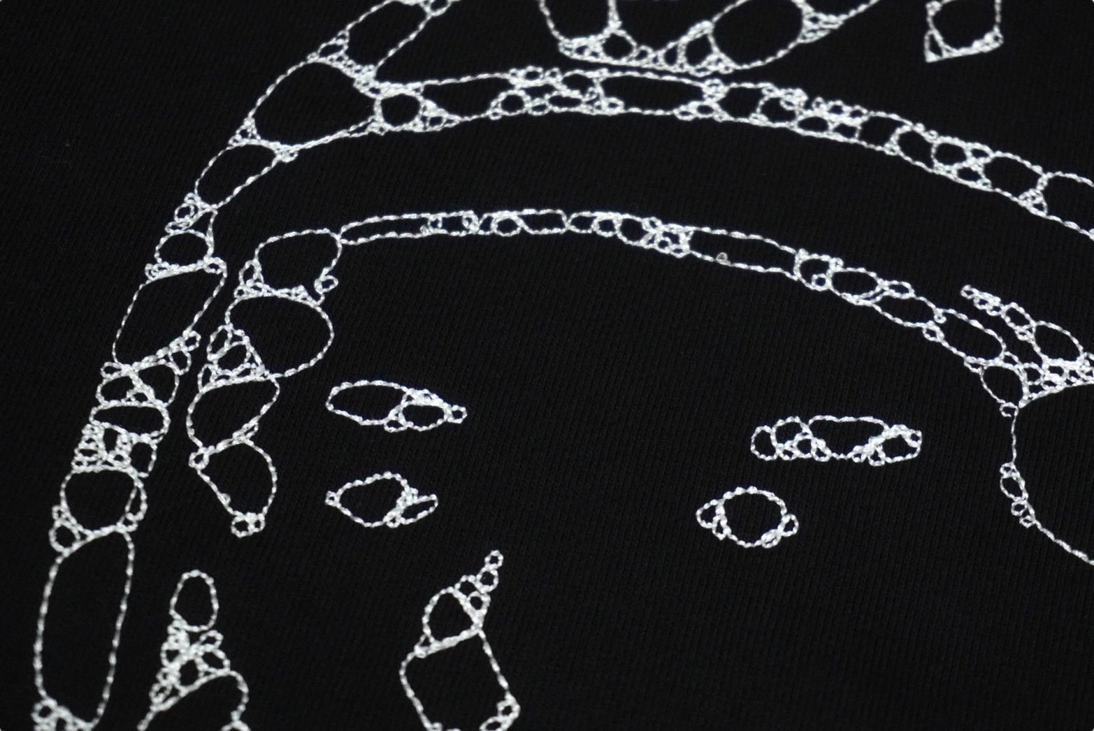 フラッグストーンデザインのヘルメットロゴが刺繍されており、背面にはブランドロゴの刺繍、袖にはヘルメットロゴのパッチが刺繍されており、ビリオネアボーイズクラブらしいオシャレなアイテムです。