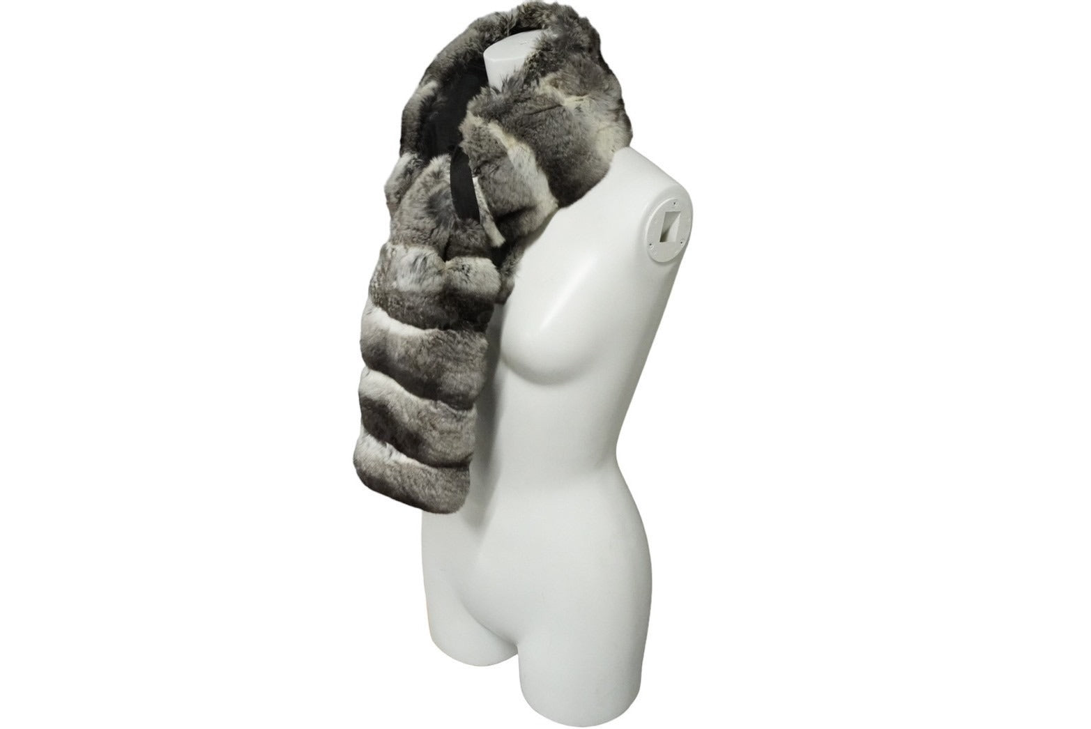 ファー マフラー ショール グレー ブラウン ホワイト ブラック クリップ付き 美品 中古 61177