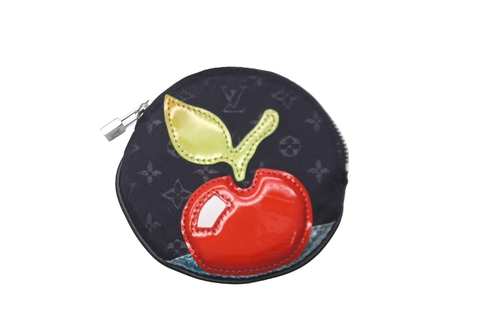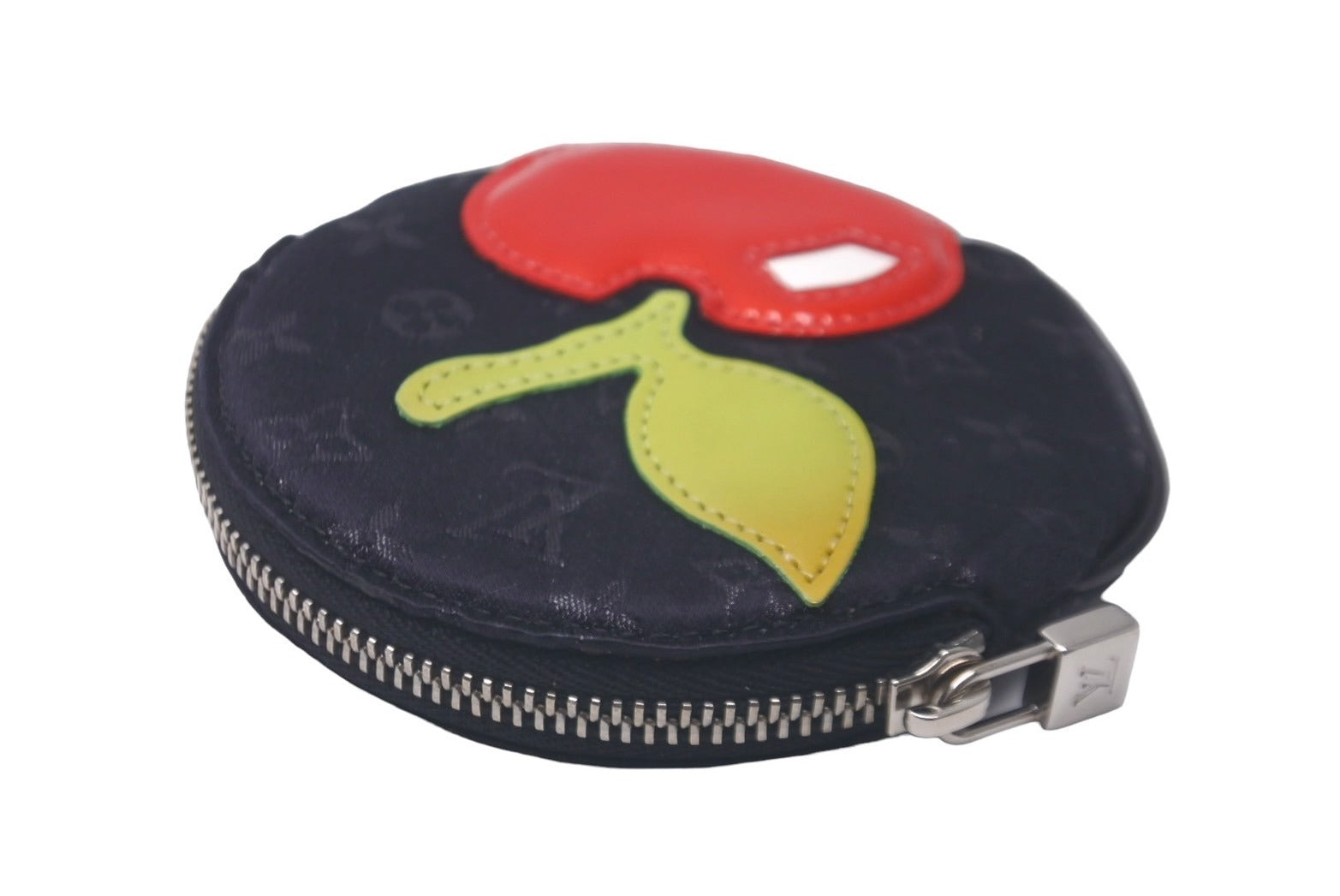 かわいらしいアップルモチーフのパッチワークデザインがオシャレなラウンド型コインケースで、高級感と品のあるアイテムです。