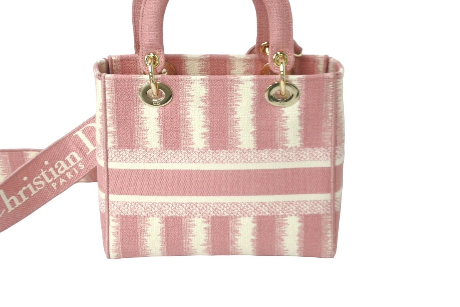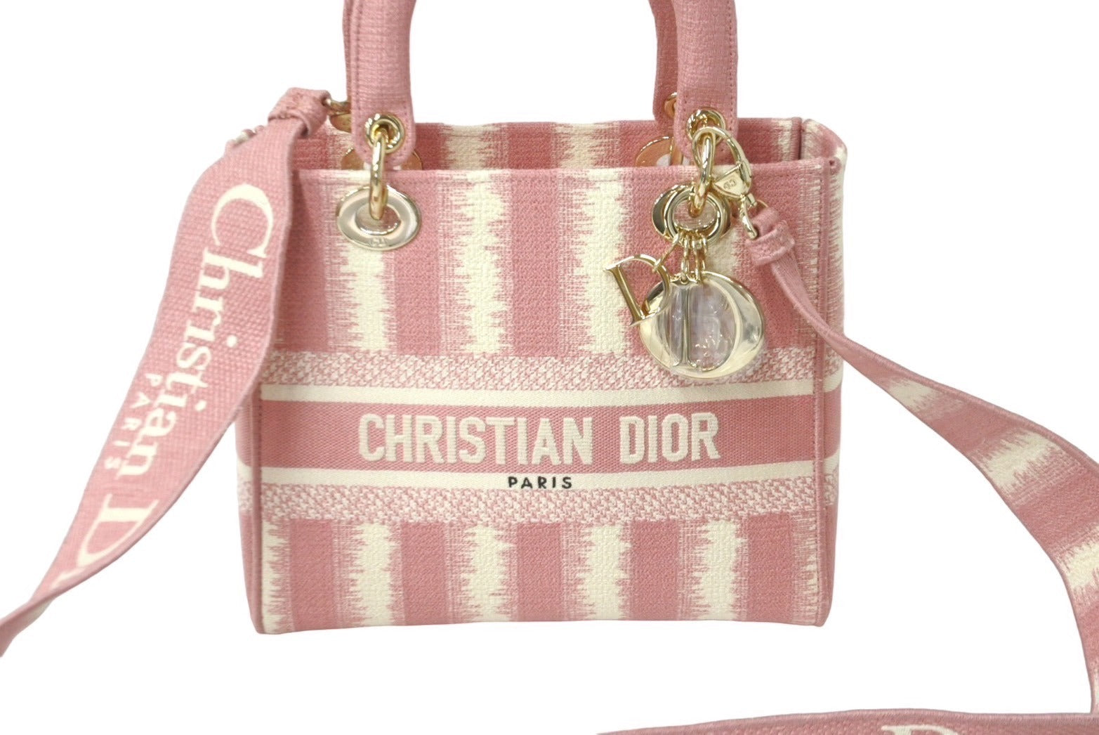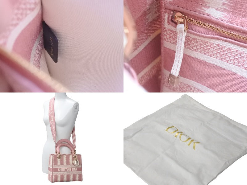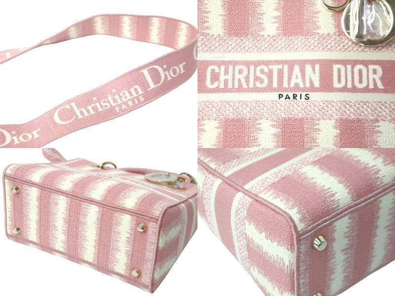 極美品 Christian Dior クリスチャンディオール レディディオール 2WAYハンドバッグ ストライプ 刺繍 シグネチャー 中古 61575