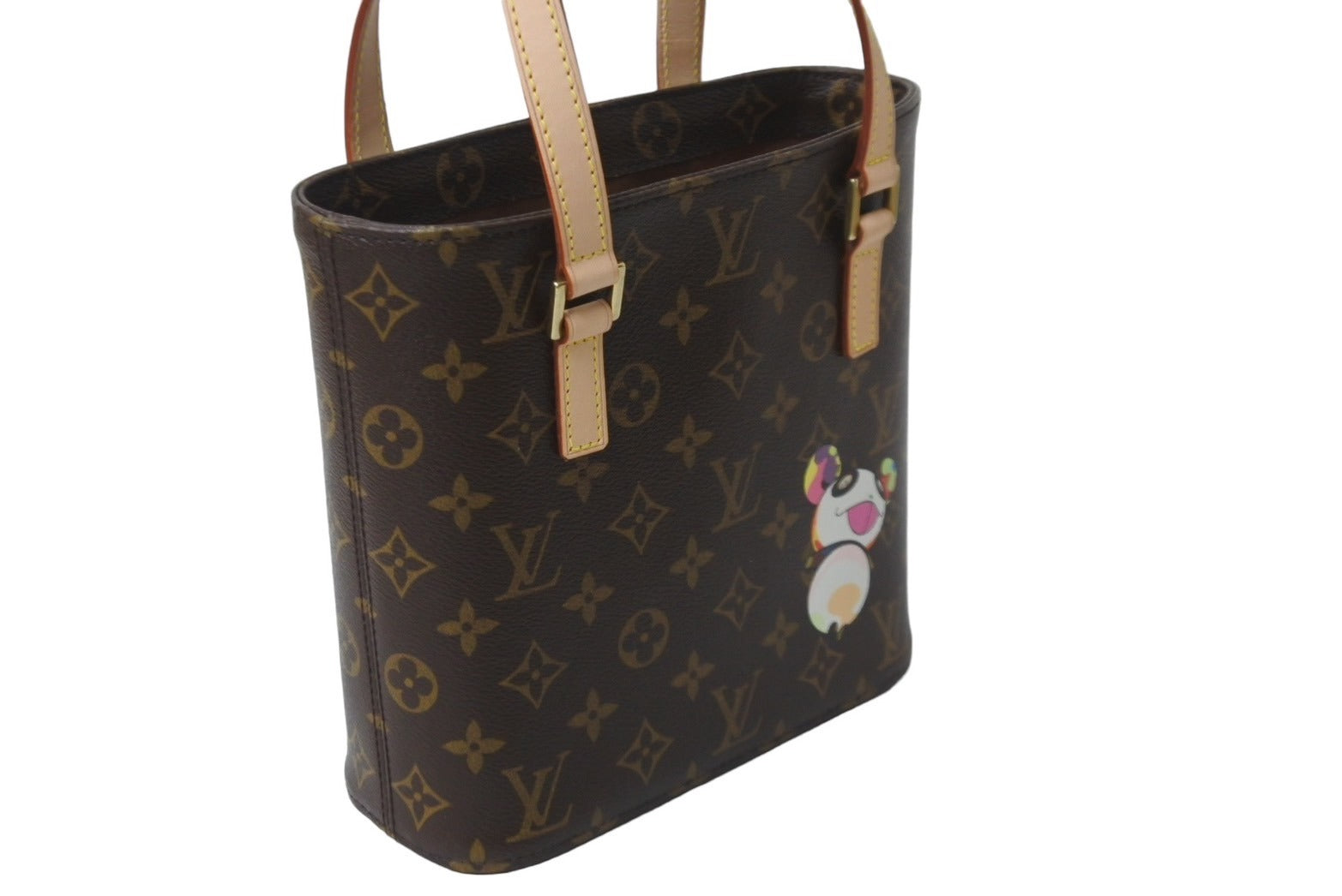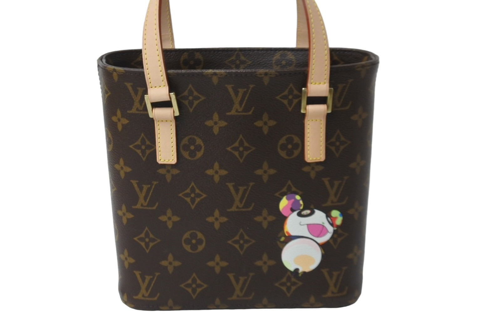 新品同様 LOUIS VUITTON ルイヴィトン 村上隆 ハンドバッグ ヴァヴァンPM モノグラムパンダ M51173 ブラウン ゴールド金具 中古 62214