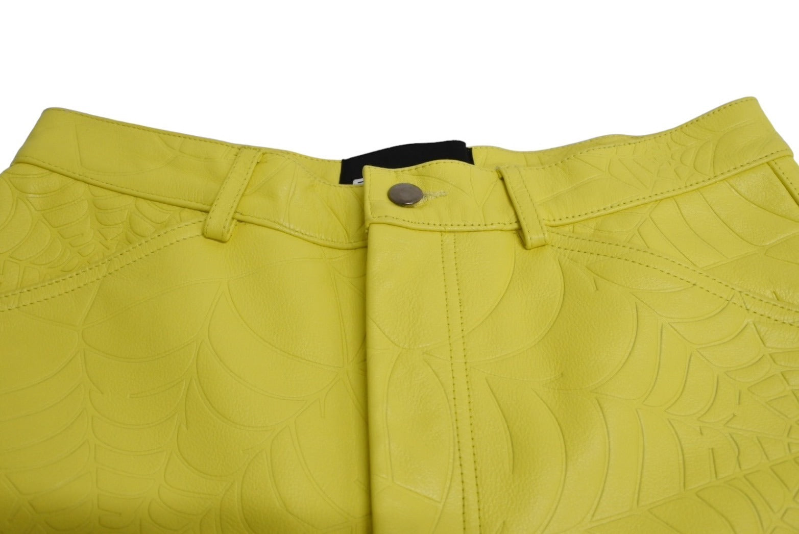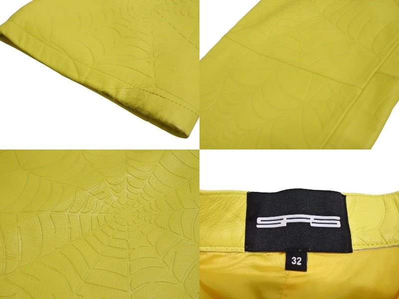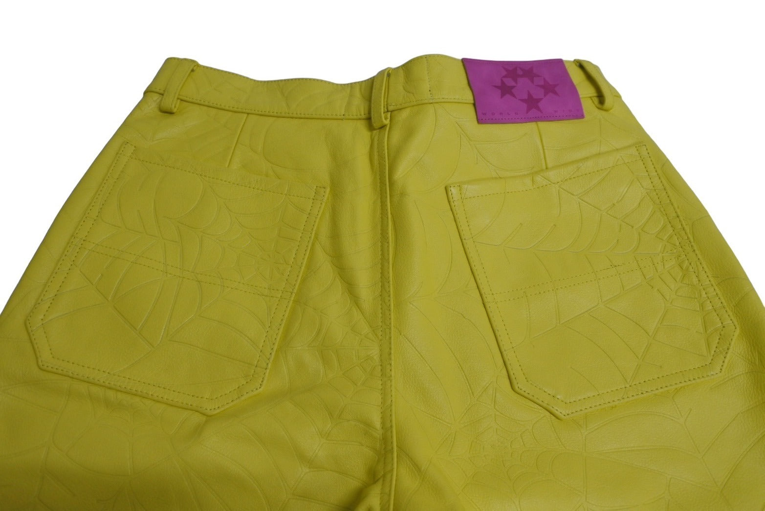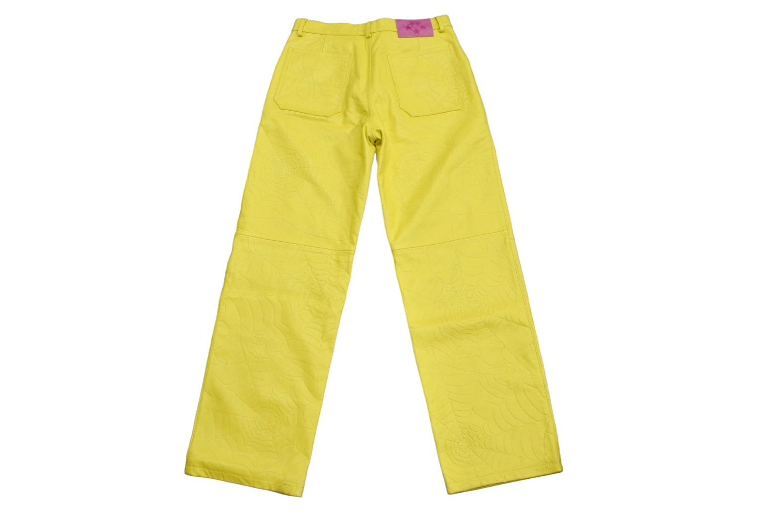 Sp5der スパイダー デボスウェブ レザーパンツ 24SS サイズ32 イエロー Young Thug 革 エンボス加工 美品 中古 63585