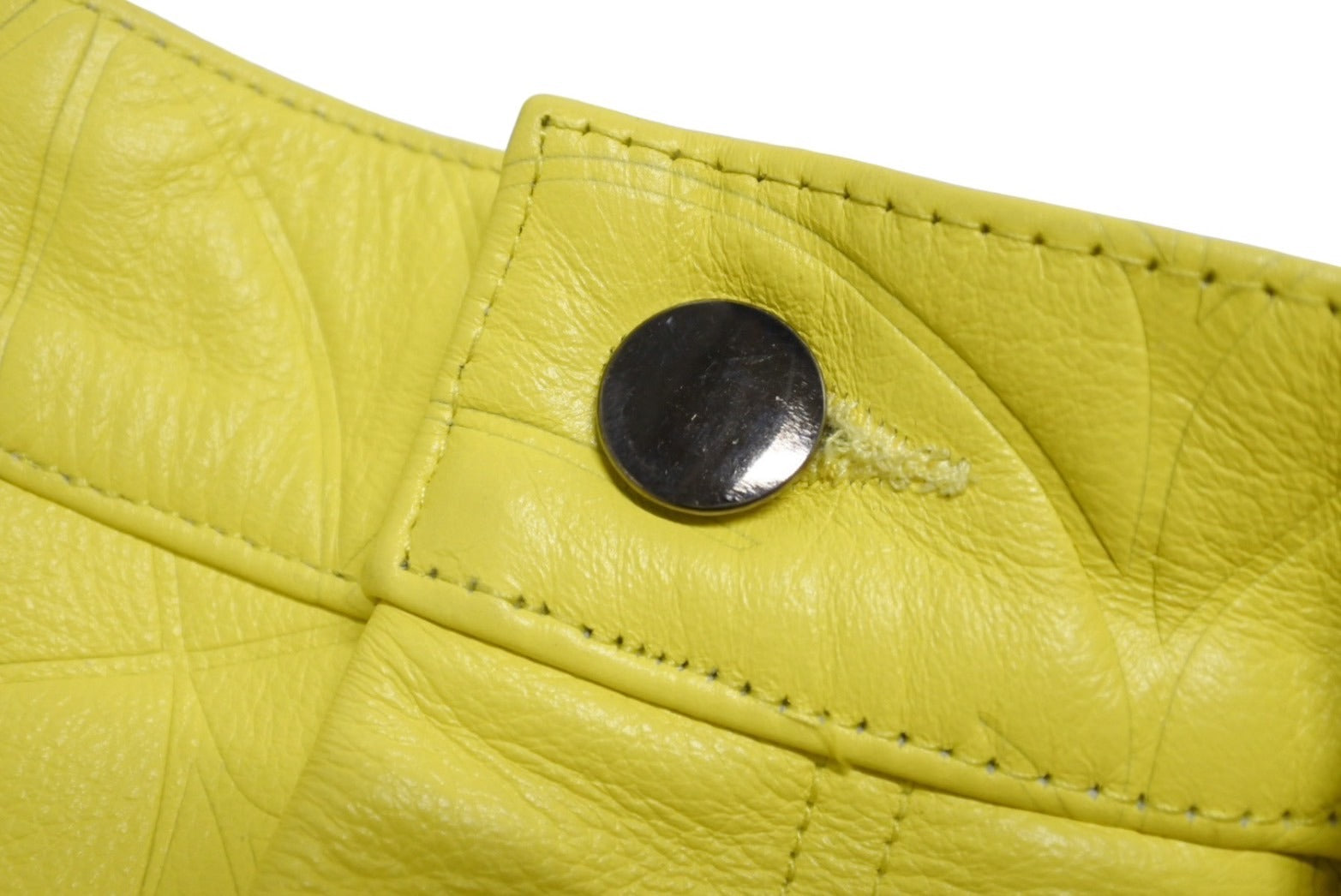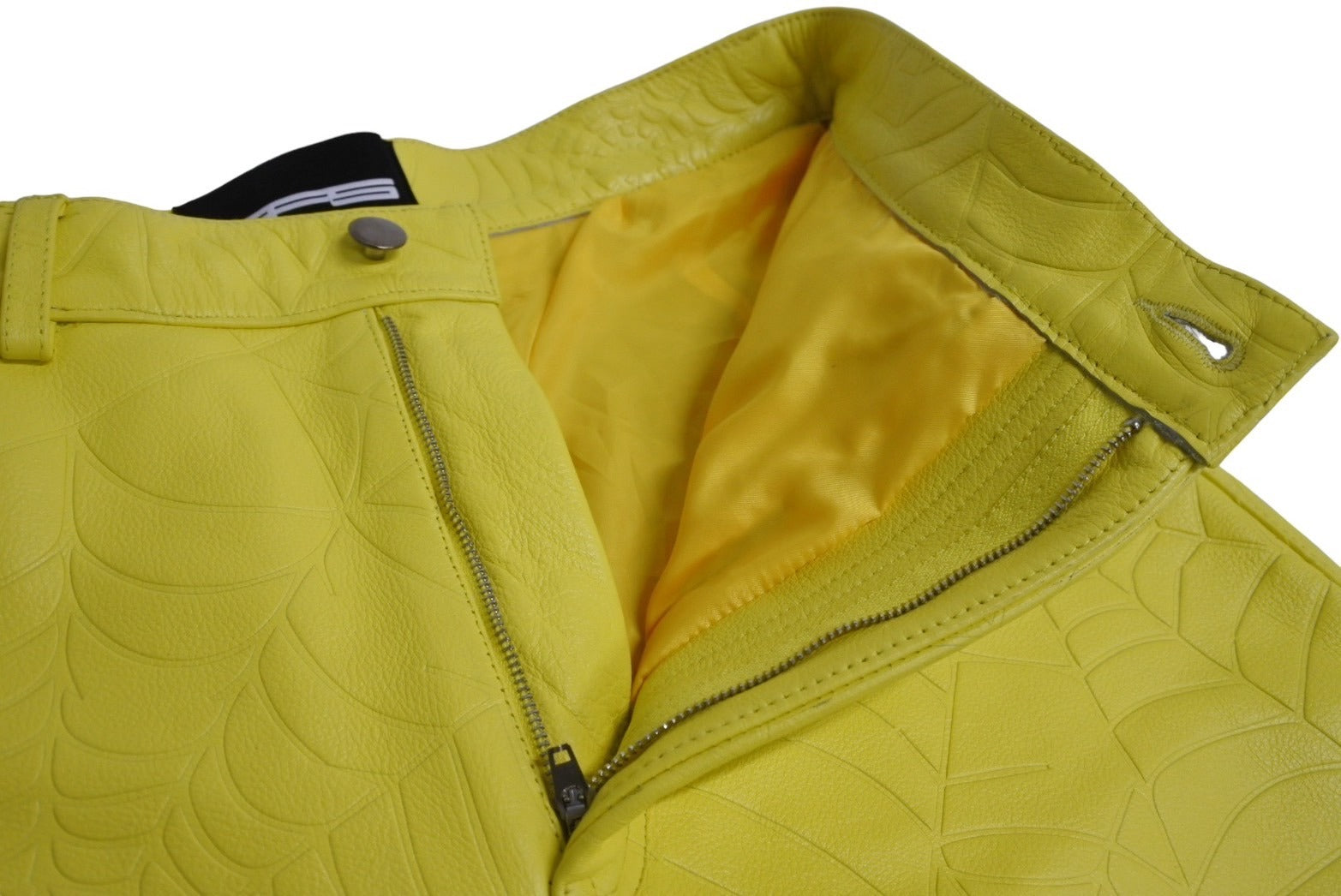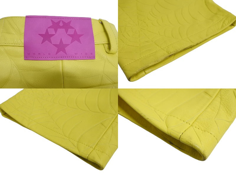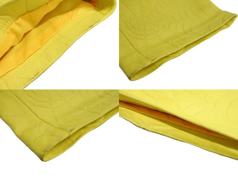 Sp5der スパイダー デボスウェブ レザーパンツ 24SS サイズ32 イエロー Young Thug 革 エンボス加工 美品 中古 63585